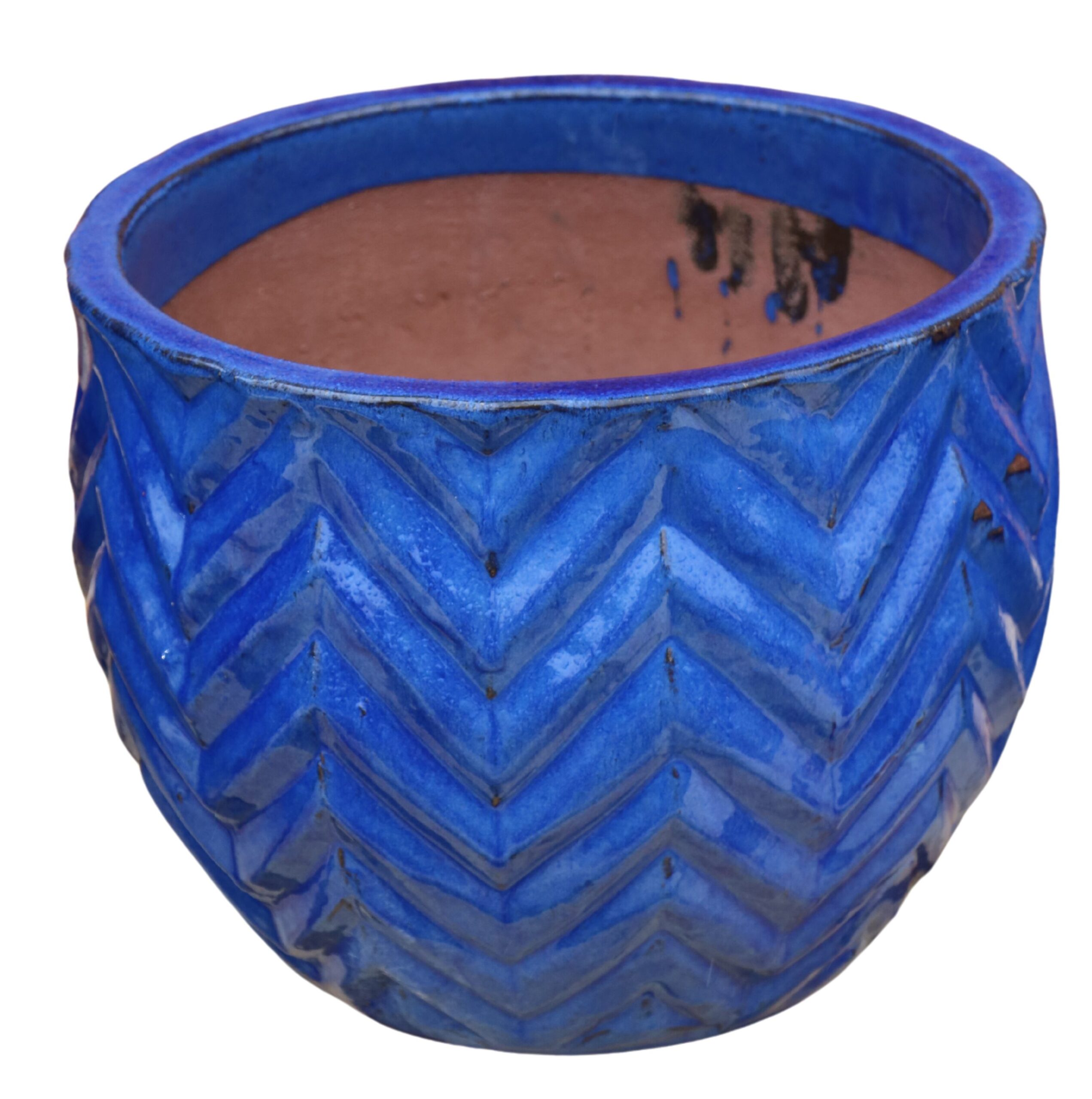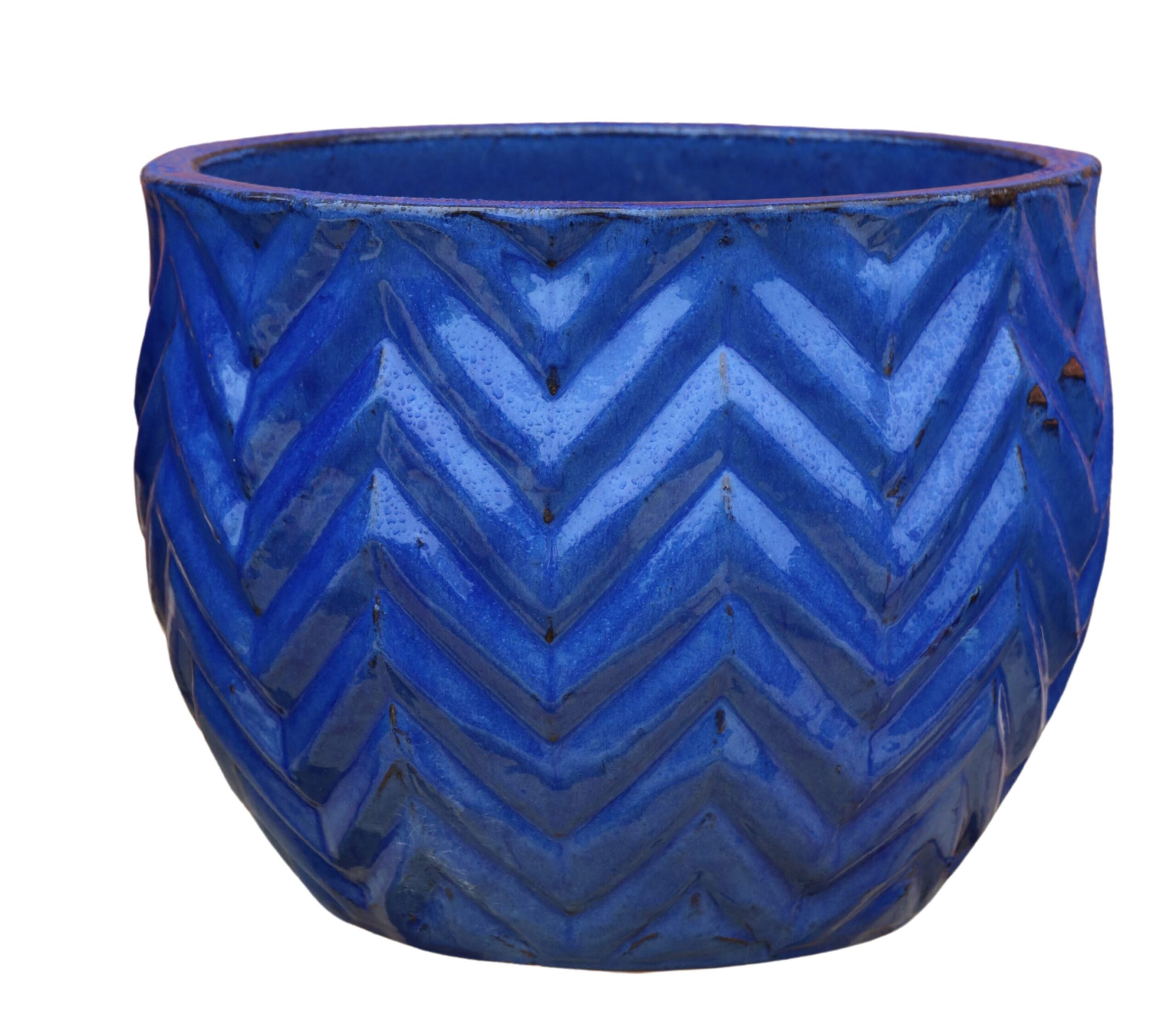 Kpl. 4 donic ceramicznych ZIGZAG niebieskich to wyjątkowy zestaw donic, które łączą rzemieślniczą estetykę z nowoczesnym designem. Każda donica zachwyca głębokim, nasyconym odcieniem niebieskiego oraz charakterystycznym wzorem w jodełkę, który nadaje powierzchni wyrazistą strukturę i dekoracyjną głębię. Połyskująca glazura podkreśla intensywność koloru, tworząc elegancki efekt odbicia światła.