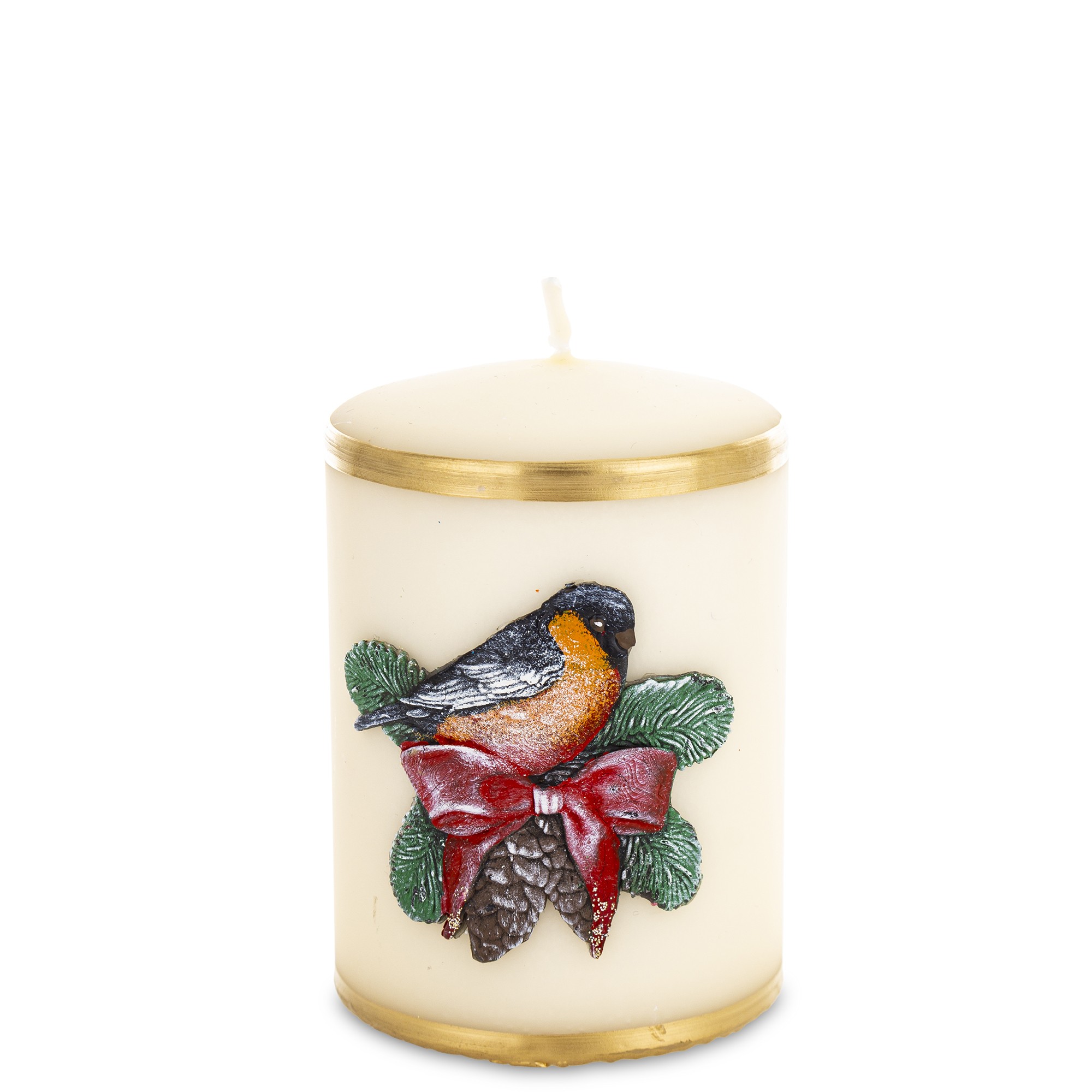 Kremowy Świeca Zimowy Ptaszek Walec Mały BIRDI