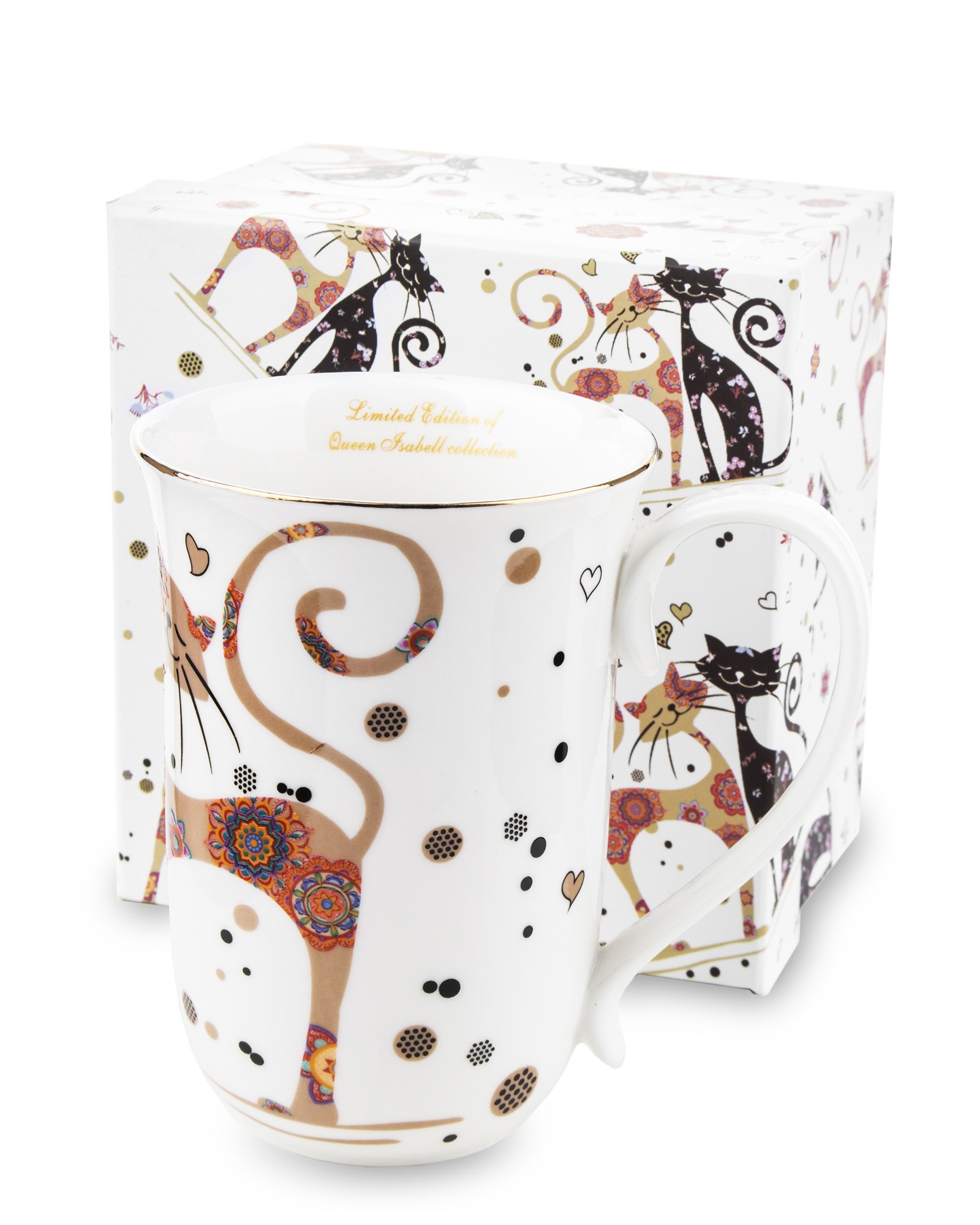Kubek porcelanowy CATS to stylowy produkt z motywem kotów, idealny dla każdego miłośnika tych zwierząt. Wykonany z trwałej porcelany, doskonały do podawania kawy i herbaty.