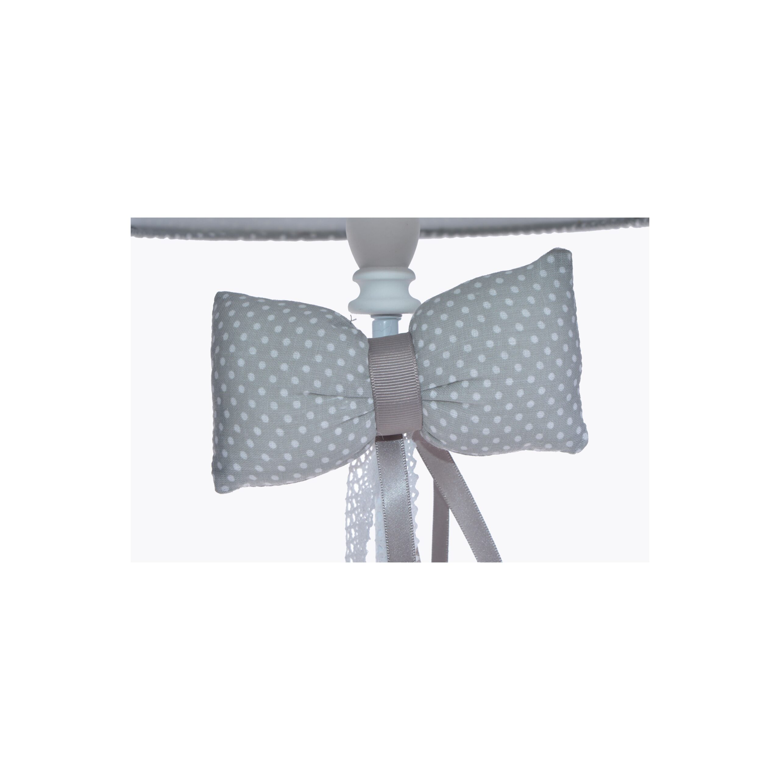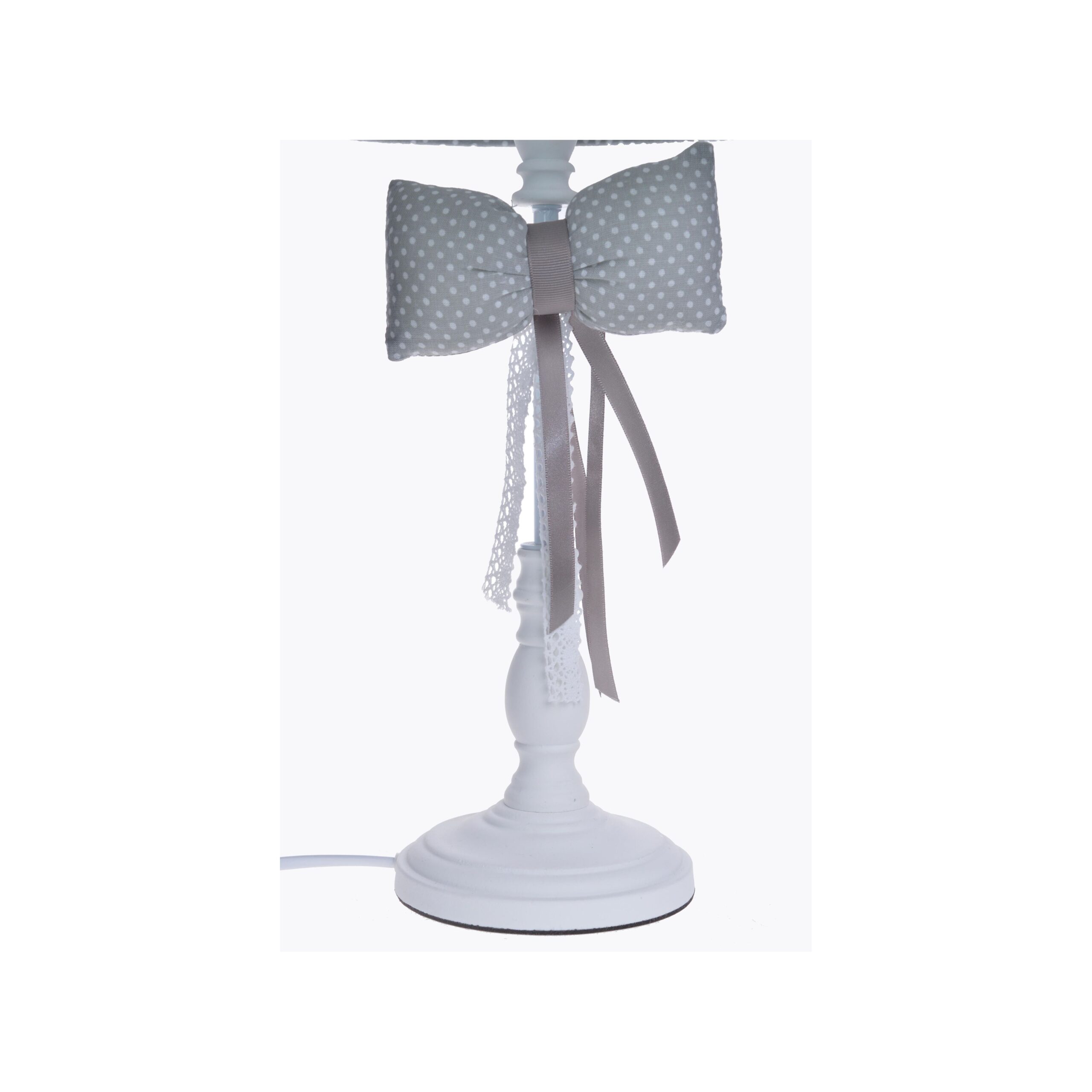 Lampa w kolorze białym z ozdobną kokardą na abażurze w kropki to subtelny dodatek, który wnosi do wnętrza delikatność i urok. Jej abażur w kropki z uroczą kokardą tworzy lekką, przyjemną kompozycję. Ta lampa nie tylko oświetla pomieszczenie, ale również dodaje mu nutki elegancji i uroku, będąc zarówno funkcjonalną, jak i dekoracyjną ozdobą.