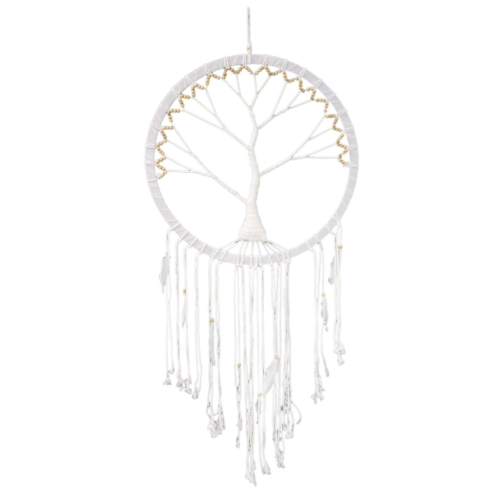 Biały łapacz snów z drzewem to mistyczny dodatek do każdego wnętrza, który wzbudza fascynację i spokój. Z obręczy zwisają nici imitujące korzenie, które dodają mu naturalnego uroku. W koronie drzewa wplecione są małe koraliki, które podkreślają jego unikalny charakter, tworząc harmonijną i inspirującą atmosferę w każdym pomieszczeniu