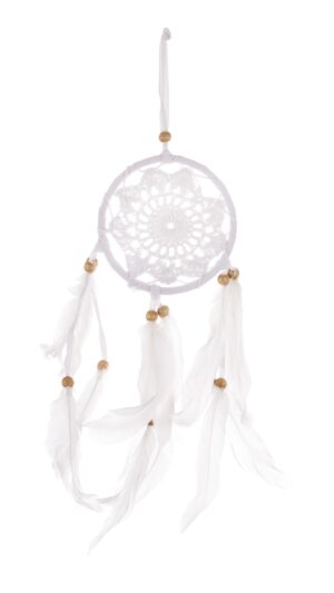 Biały łapacz snów w kształcie serca jest nie tylko eleganckim elementem dekoracyjnym, ale również głębokim symbolem ochrony i harmonii. Jego centralny motyw to misterny gwieździsty wzór spleciony w białym kolorze, który kontrastuje z czarną obręczą serca, nadając mu wyjątkowego charakteru. Z serca łapacza snów opadają trzy czarne sznurki, na których umieszczone są białe pióra i delikatne koraliki, dodające mu lekkości i subtelnego blasku. Ta kompozycja kolorystyczna i fakturalna doskonale współgra z różnymi stylami wnętrz, od nowoczesnych po etniczne czy boho, dodając im głębi. Łapacz snów nie tylko ozdabia ściany, ale również przynosi poczucie bezpieczeństwa i spokoju, działając jak talizman ochronny przed złymi snami. Umieszczony w sypialni, pokoju dziecięcym czy salonie, staje się nie tylko elementem dekoracyjnym, ale również źródłem pozytywnej energii i inspiracji.