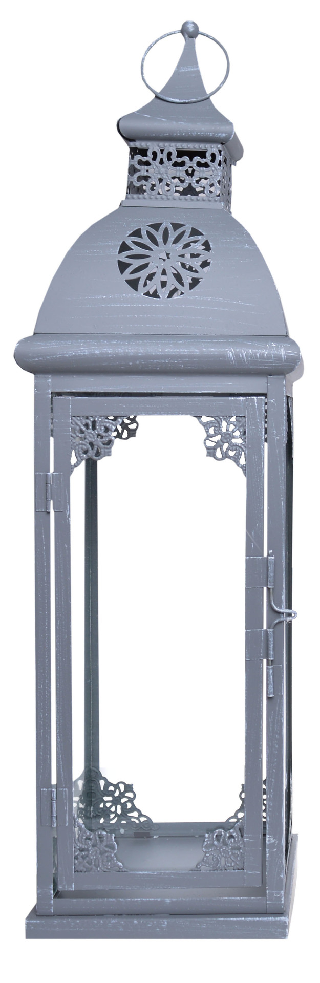 Jej kolorystyka w odcieniu szarości doskonale komponuje się z różnymi stylami aranżacyjnymi, dodając pomieszczeniom czy przestrzeniom ogrodowym elegancji i wyrafinowania. Efektowne przecierane wykończenie nadaje latarni rustykalny urok, który przyciąga uwagę i tworzy unikalny, oryginalny wygląd.