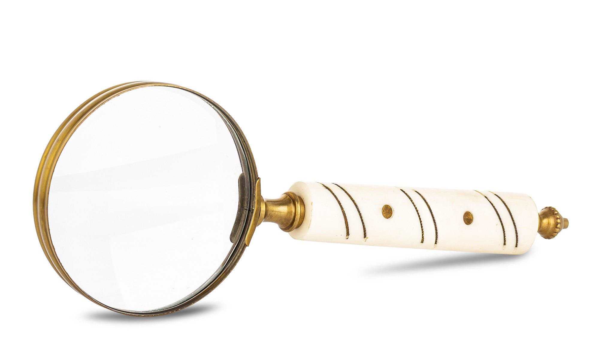 Dekoracyjna lupa z ozdobnym uchwytem. Stylowy dodatek do biurka, biblioteczki lub prezentu z charakterem.