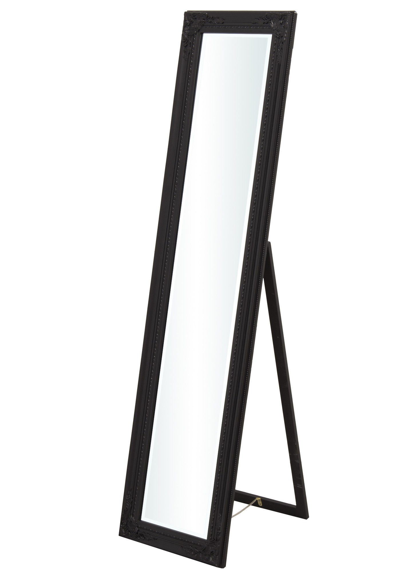 Nasze stojące lustro w drewnianej, czarnej ramie z delikatnymi roślinnymi ornamentami w narożnikach to synonim klasy i elegancji. Minimalistyczne zdobienia wzdłuż całej ramy dodają subtelnego uroku, idealnie komponując się z każdym wnętrzem. To lustro nie jest praktyczne, ale także piękne i trwałe. Wybierz jakość i design, które odmieniają każde pomieszczenie.