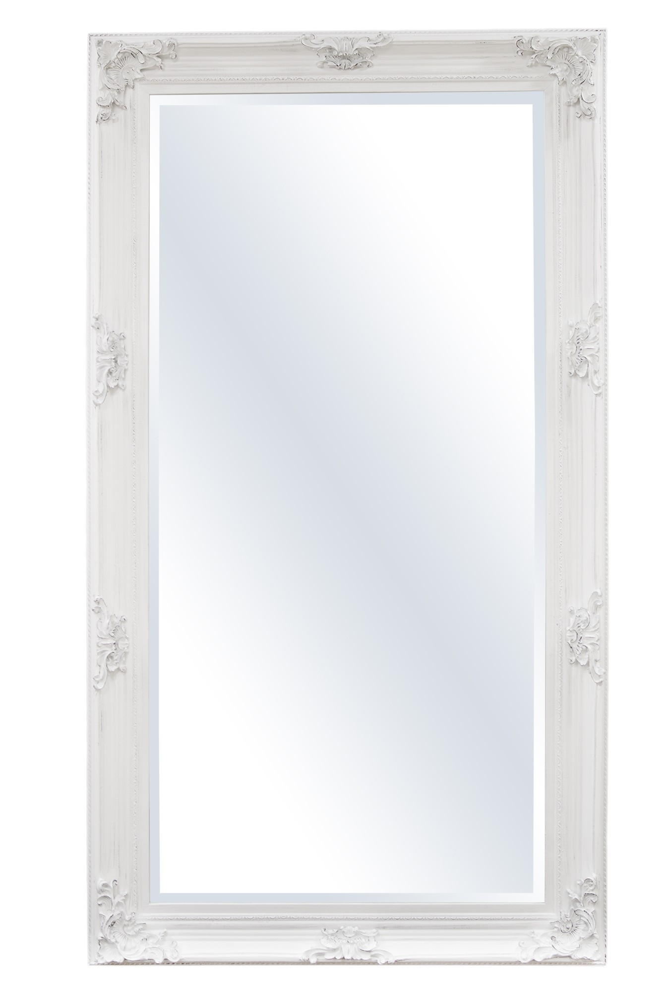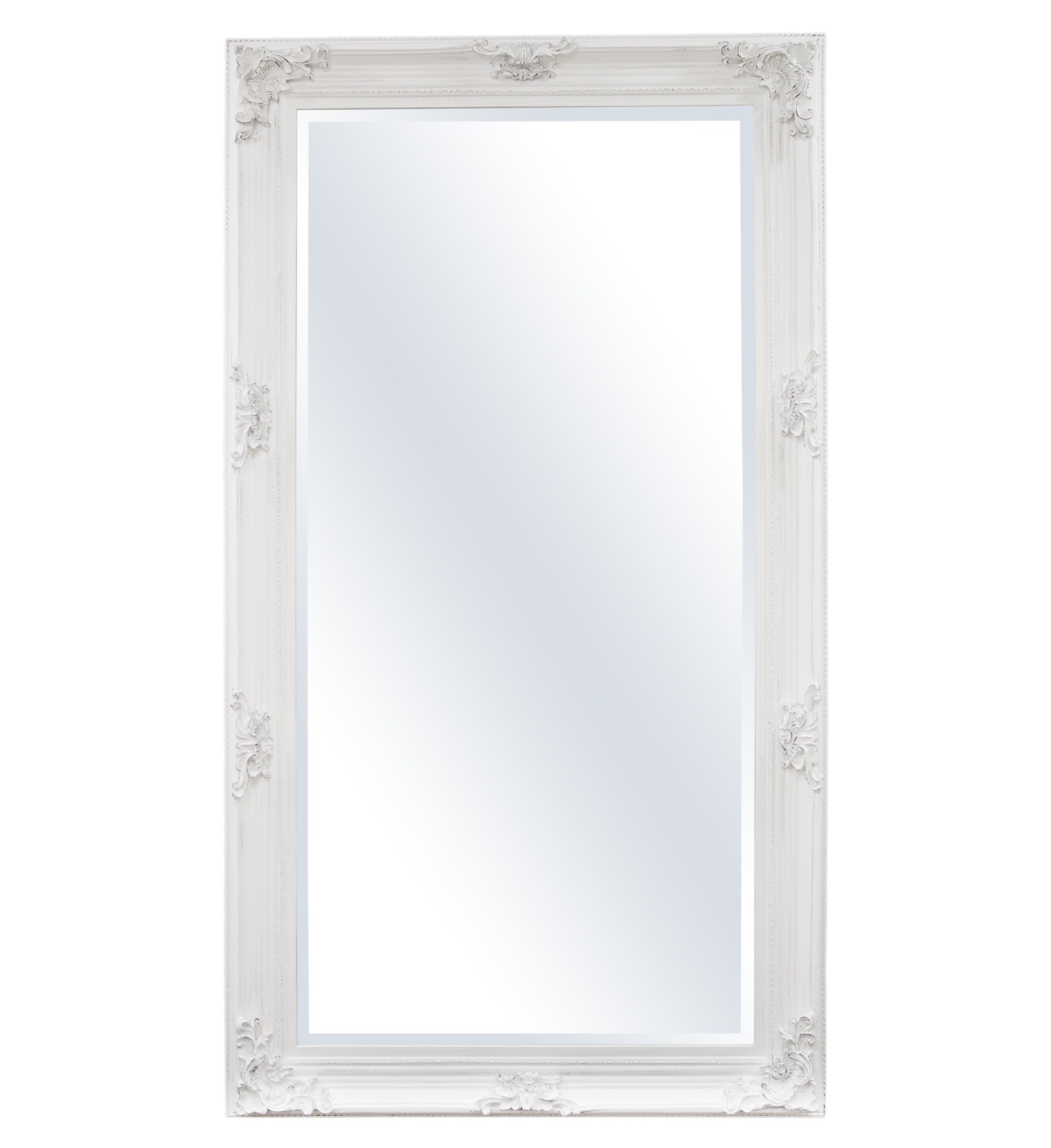 Oferujemy eleganckie duże lustro w kształcie prostokąta, które nie tylko optycznie powiększy przestrzeń, ale także dodatkowo ozdobi każde wnętrze. Rama wykonana z drewna, pomalowana na biało, posiada subtelne zdobienia roślinne w narożnikach oraz symetryczne wzory na bokach. Idealne do eleganckiego salonu, hallu lub garderoby, lustro o wymiarach 180×100 cm zapewni nie tylko funkcjonalność, ale także doda klasy pomieszczeniom.