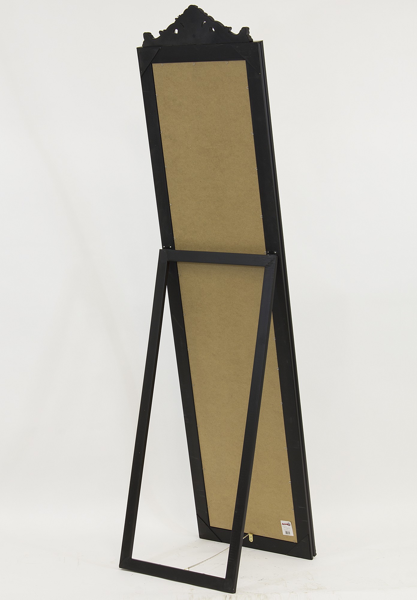 Odkryj nasze gustowne lustro stojące, które nie tylko pozwala wygodnie się przejrzeć, ale także dodaje elegancji do każdego pomieszczenia. Czarna drewniana rama posiada eleganckie zdobieniem przy górnej listwie. Produkt stanowi doskonałą propozycję dla tych, którzy cenią sobie estetykę i funkcjonalność. Jego duży rozmiar nie tylko ułatwia codzienne oględziny, ale także wspaniale komponuje się w przestrzeni, dodając jej głębi i charakteru. To nie tylko lustro, ale prawdziwy element dekoracyjny, który podkreśla gust i styl wnętrza. Będzie idealne do sypialni, salonu czy garderoby, a dzięki wykonaniu z wysokiej jakości materiałów, będzie trwałym i pięknym dodatkiem.
