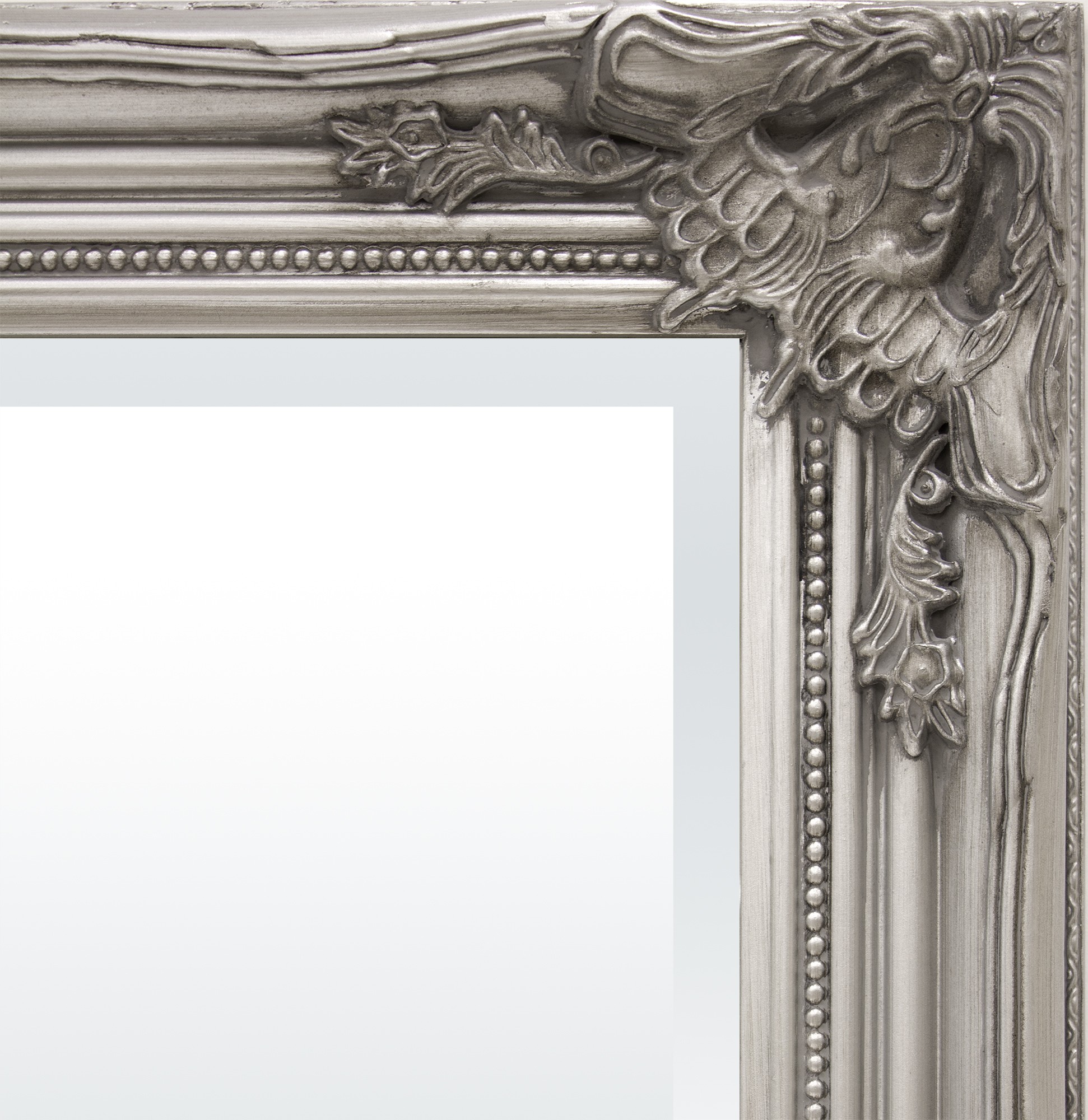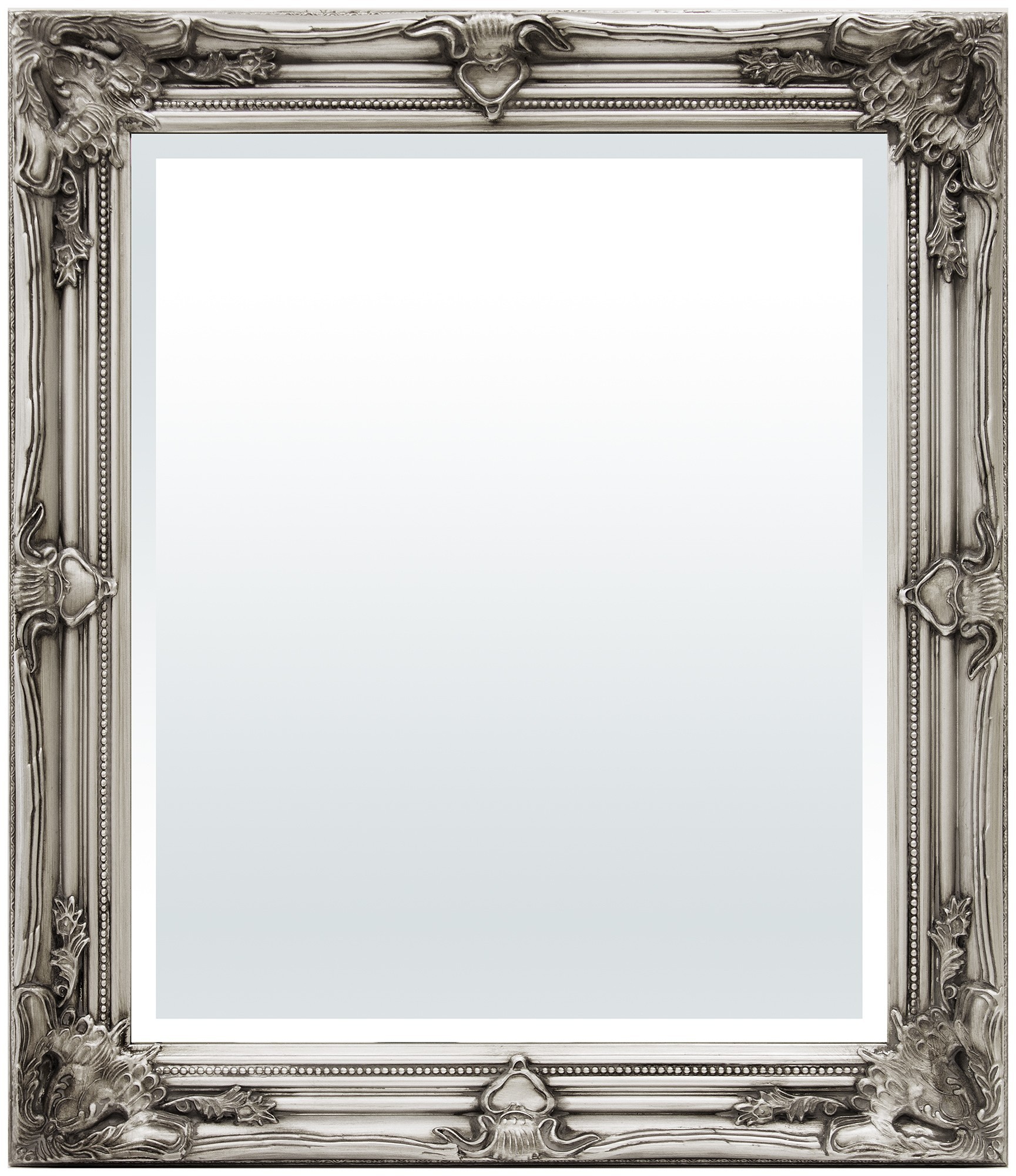 Szukasz stylowego, klasycznego i stosunkowo niedużego lustra, podkreślającego twój dobry gust? Oto one prostokątne lustro o wymiarach 64x74x4 cm, osadzone w drewnianej, ozdobnej ramie w srebrnym kolorze z efektem postarzenia. Jego vintage’owy charakter podkreślają zdobienia w narożnikach i centralnych punktach ramy. Idealne do klasycznych i stylizowanych wnętrz, dodając im elegancji i unikalnego uroku.
