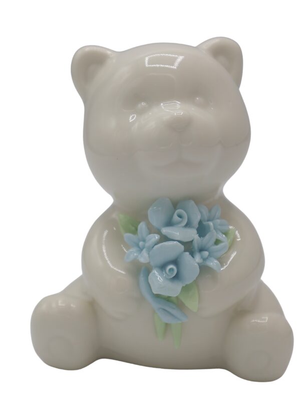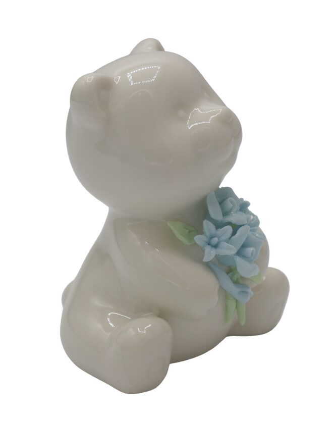 Miś ceramiczny biały z niebieskimi kwiatuszkami mały RYND