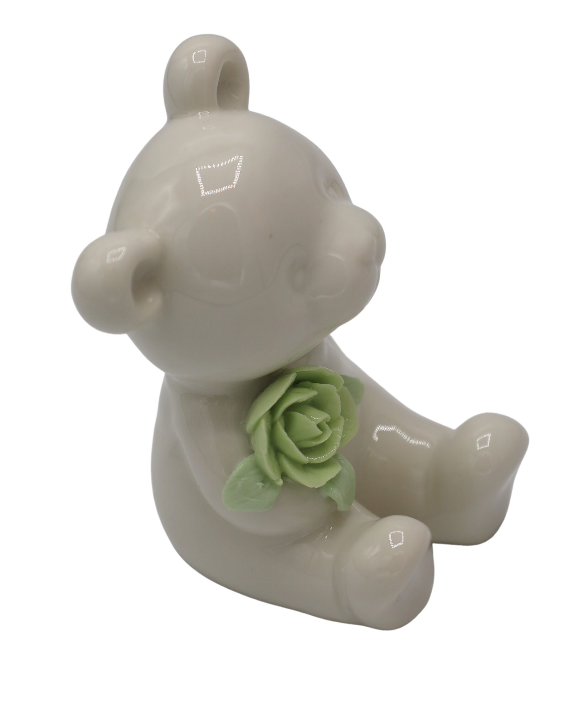 Miś TEDDIE ceramiczny biały z zielonym kwiatuszkiem mini