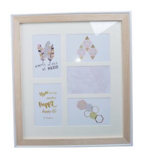 Wprowadź do swojego wnętrza harmonię, kolor i pozytywną energię dzięki Multiramce na 6 zdjęć KERET– wyjątkowej kompozycji dekoracyjnej, która łączy funkcjonalność z artystycznym wyrazem. Ramka wykonana jest z jasnego drewna, a jej wnętrze podzielone na pięć sekcji, każda o wymiarze 9×14 cm, oddzielona eleganckim białym passe-partout.