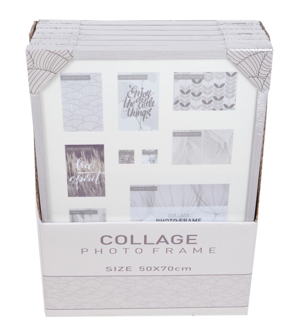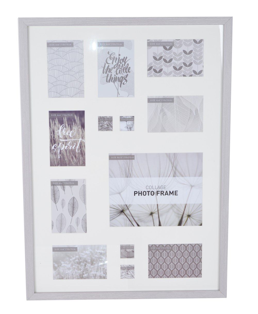 Ramka MECEK mieści dziewięć zdjęć w różnych formatach 8x(10x15cm), 1x(20x25cm), 4x(3,5×3,5cm), ułożonych w formie kolażu, który pozwala opowiedzieć historię – od pierwszych kroków dziecka po ulubione rodzinne chwile.
