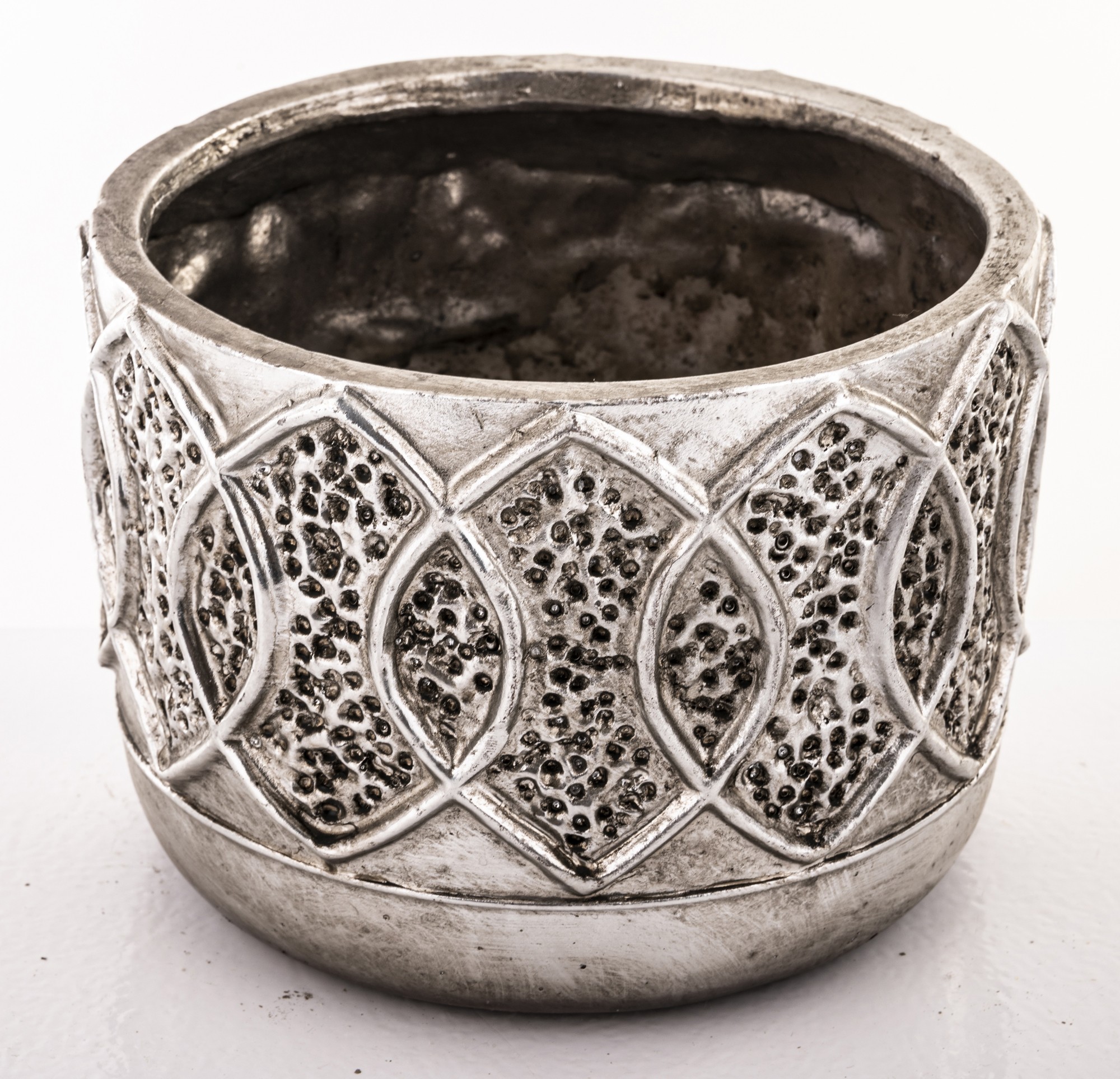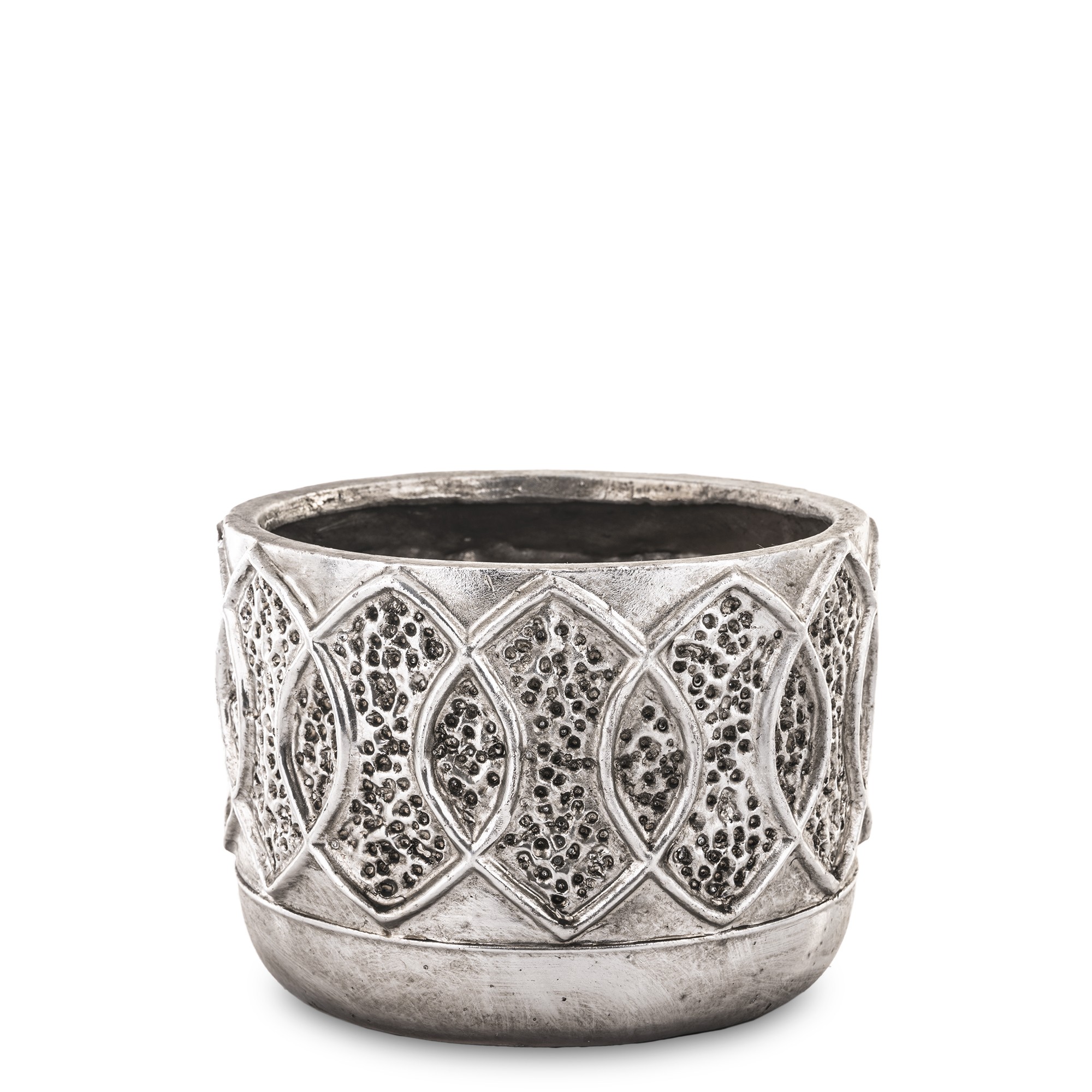 Osłonka na doniczkę o średnicy 18 cm w srebrnym kolorze to wyjątkowy dodatek, który zachwyca wyrzeźbionymi kształtami liści i interesującą fakturą. Idealnie sprawdzi się do eksponowania roślin, dodając elegancji i uroku Twojemu wnętrzu. Mimo prostego kształtu prezentuje się bardzo stylowo.