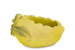 Osłonka na doniczkę LIMONE w kształcie cytryny to oryginalna dekoracja, która doda wnętrzu lub ogrodowi świeżości i letniego klimatu. Idealna do roślin doniczkowych i ziół.