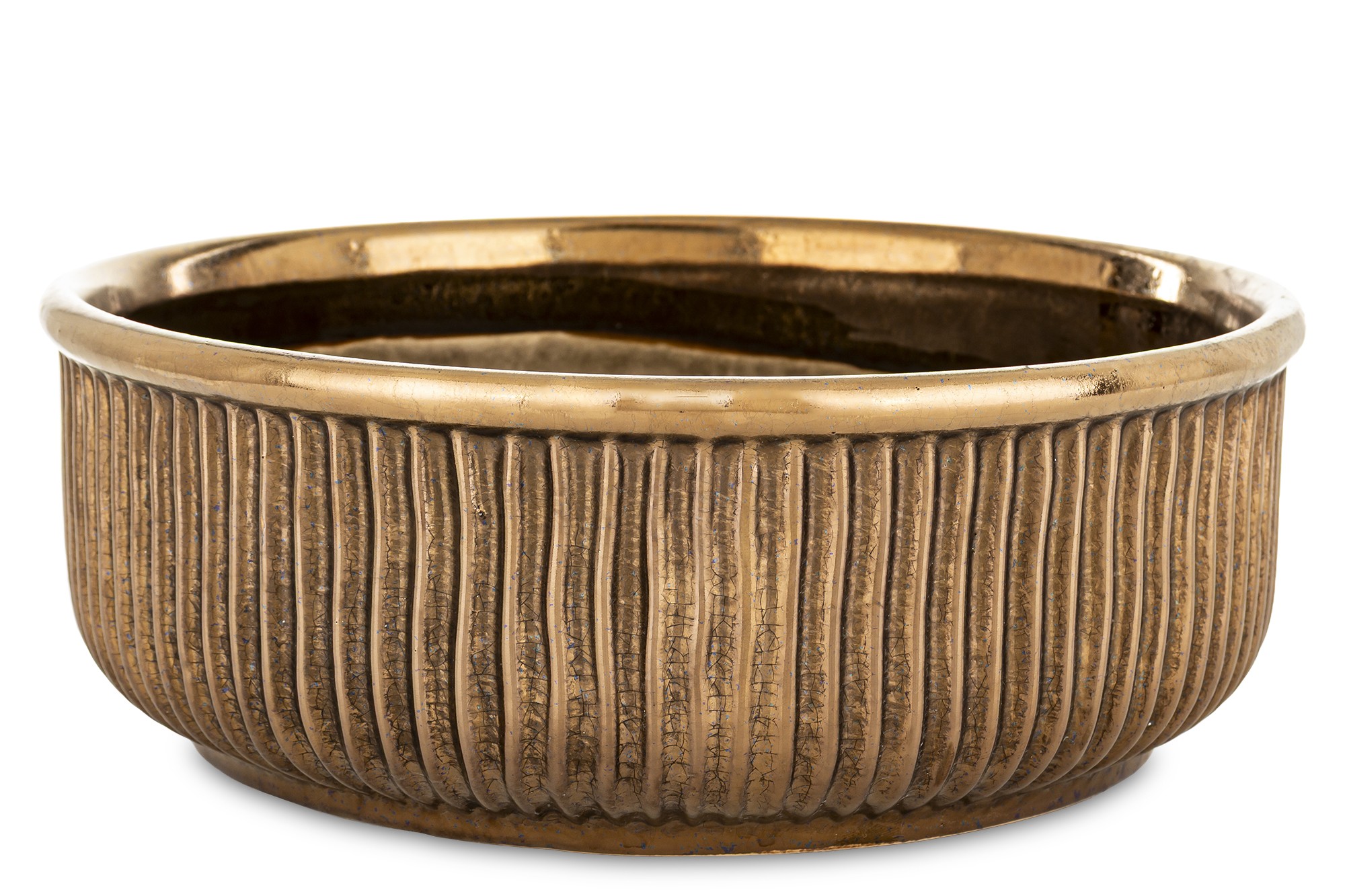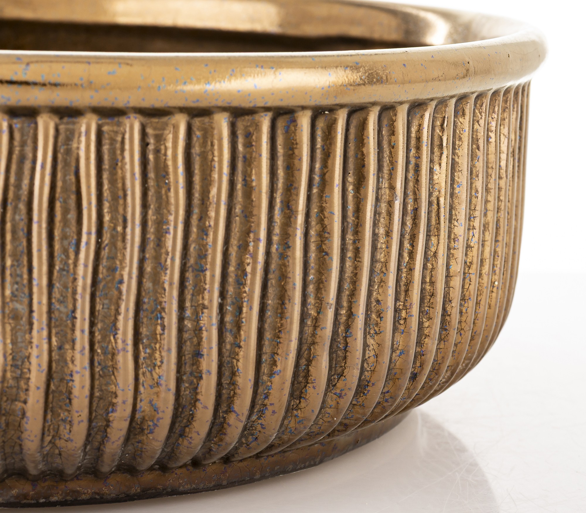 Osłonka z kamionki złota GOLDINO to produkt, który łączy w sobie funkcjonalność i estetykę. Jej subtelnie wypolerowana powierzchnia odbija światło, tworząc piękne refleksy, które dodają blasku każdemu pomieszczeniu. Dzięki unikalnej teksturze i intensywnemu złotemu kolorowi, osłonka ta doskonale sprawdzi się jako zarówno samodzielny element dekoracyjny, jak i część większych aranżacji wnętrz. Jest idealna do prezentacji roślin, które dzięki niej będą wyglądały jeszcze bardziej efektownie.