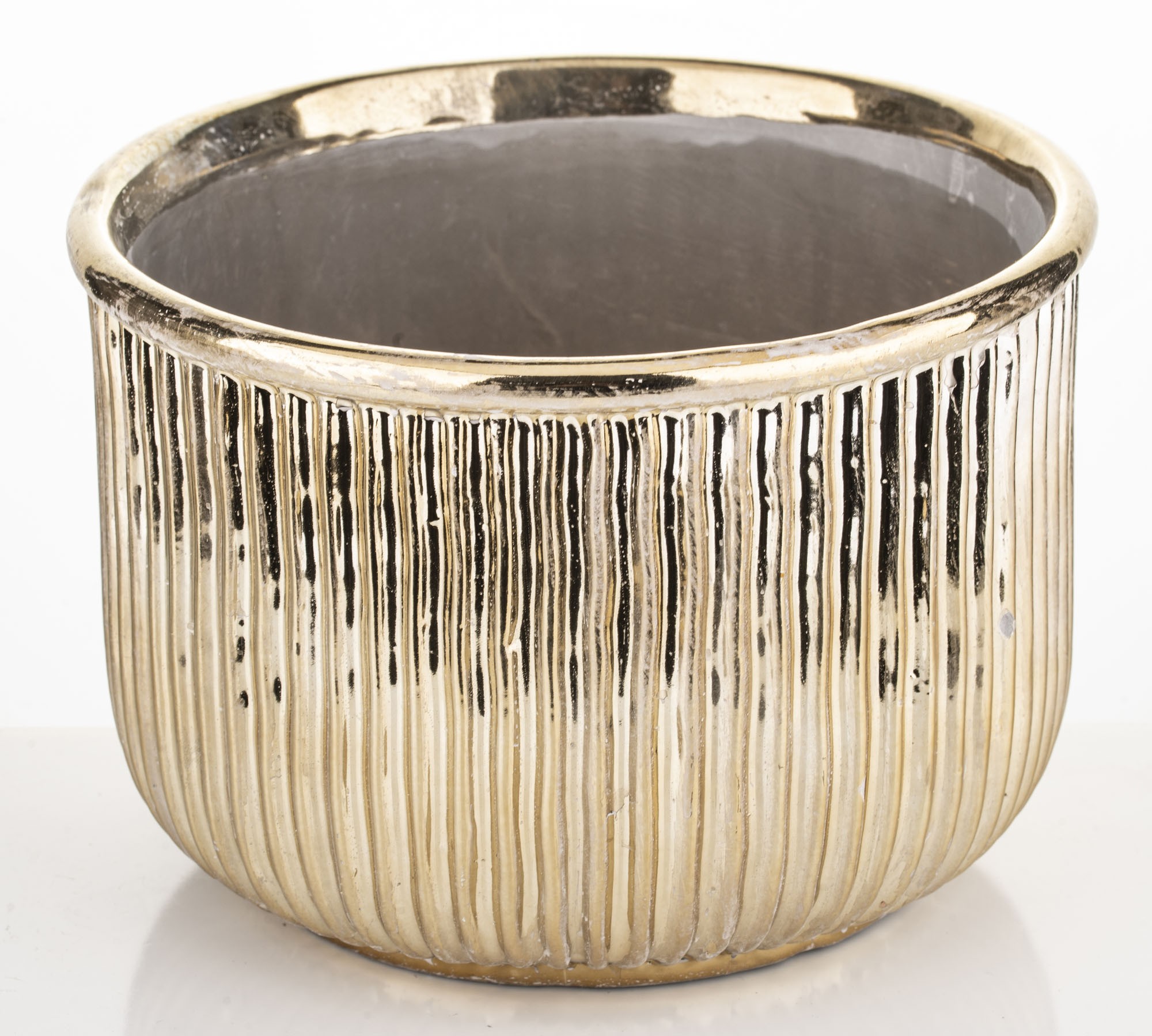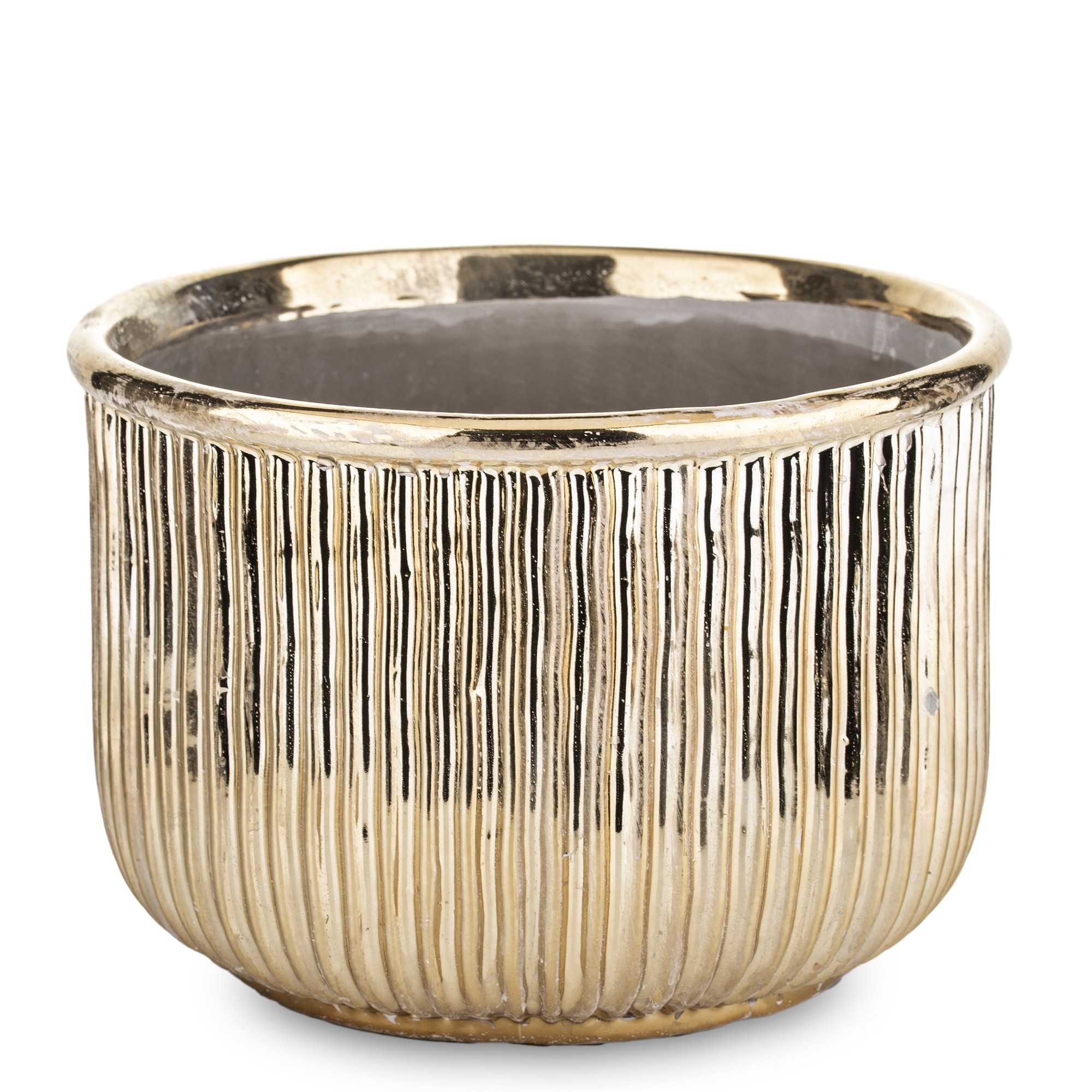 Osłonka z kamionki złota GOLDIS to elegancki dodatek do Twojego wnętrza, idealny dla miłośników roślin. Wykonana z wysokiej jakości kamionki, charakteryzuje się wyjątkowym, złotym wykończeniem, które doda blasku każdemu pomieszczeniu. Nasza osłonka na doniczki łączy w sobie estetykę i funkcjonalność, doskonale komponując się z różnorodnymi stylami dekoracyjnymi, od nowoczesnych po klasyczne. Dzięki solidnej konstrukcji skutecznie chroni powierzchnie przed wilgocią, a zarazem stanowi stylowe podkreślenie Twojej roślinności. Wybierz osłonkę GOLDIS i wprowadź odrobinę luksusu do swojego domu.