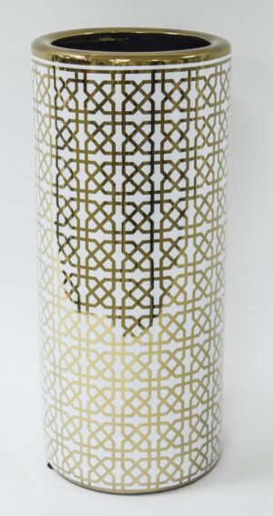 Stojak na parasole Uchos w kolorze złoto-szarym to elegancki i stylowy element dekoracyjny, który wprowadzi do Twojego domu odrobinę antycznej atmosfery. Wykonany z metalu o wysokiej jakości, stojak jest nie tylko dekoracją, ale również funkcjonalnym gadżetem do przechowywania parasoli.