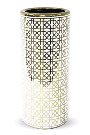 Parasolnik Uchos to połączenie elegancji i funkcjonalności w jednym produkcie. Wykonany z metalu w kolorze złoto-szarym, prezentuje się bardzo stylowo i pasuje do wielu wnętrz. Jego antyczny styl dodaje mu wyjątkowego charakteru i sprawia, że wyróżnia się na tle innych parasolników.
