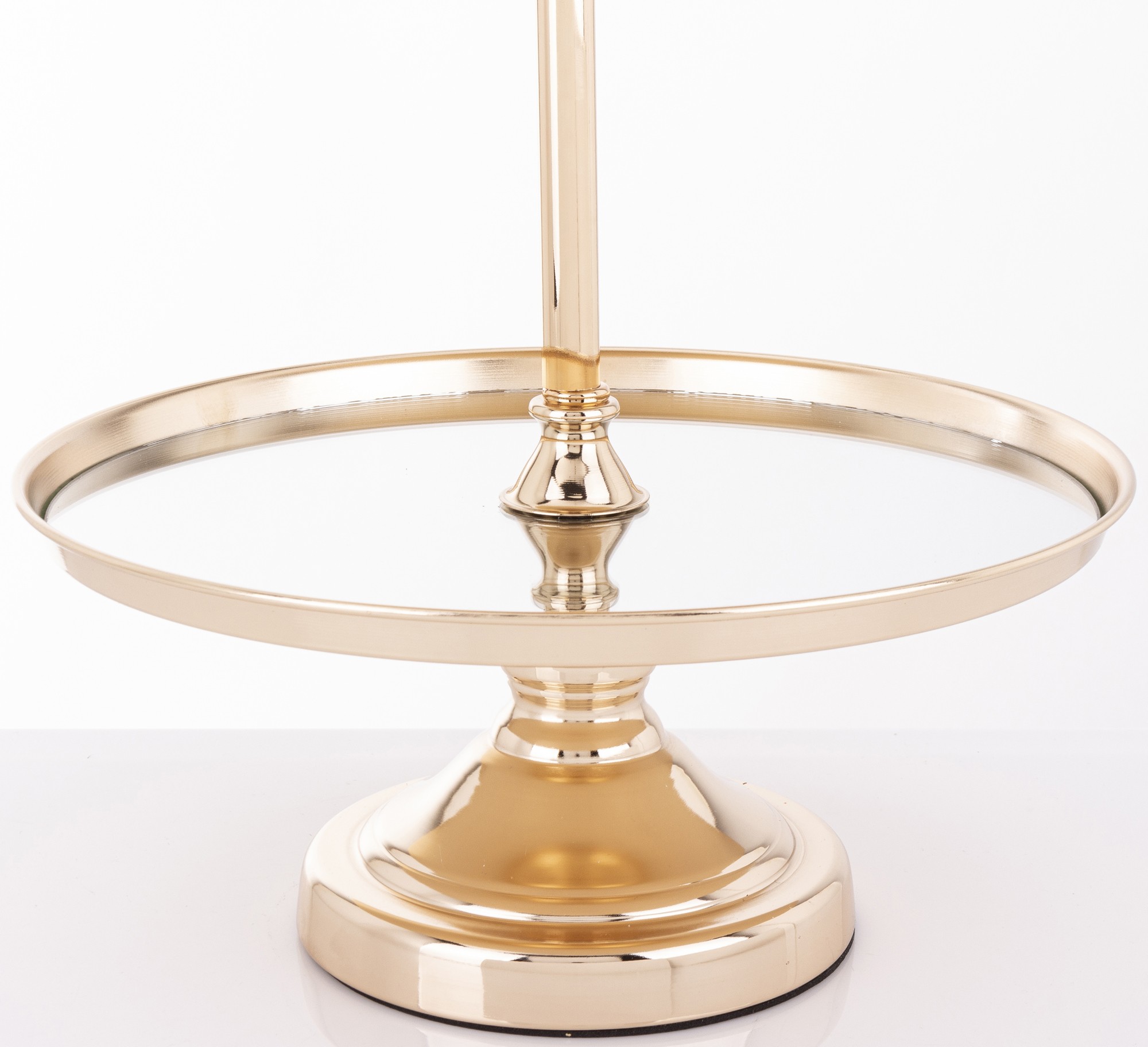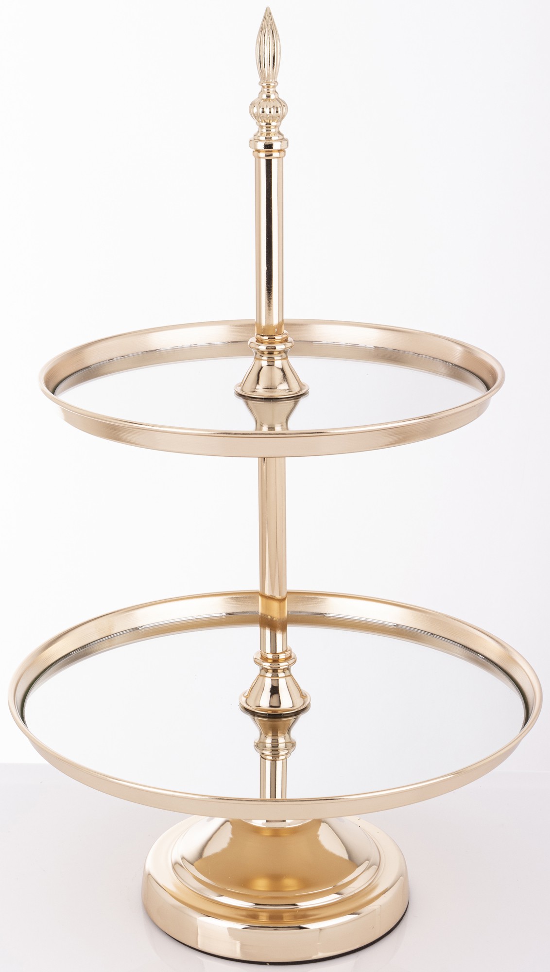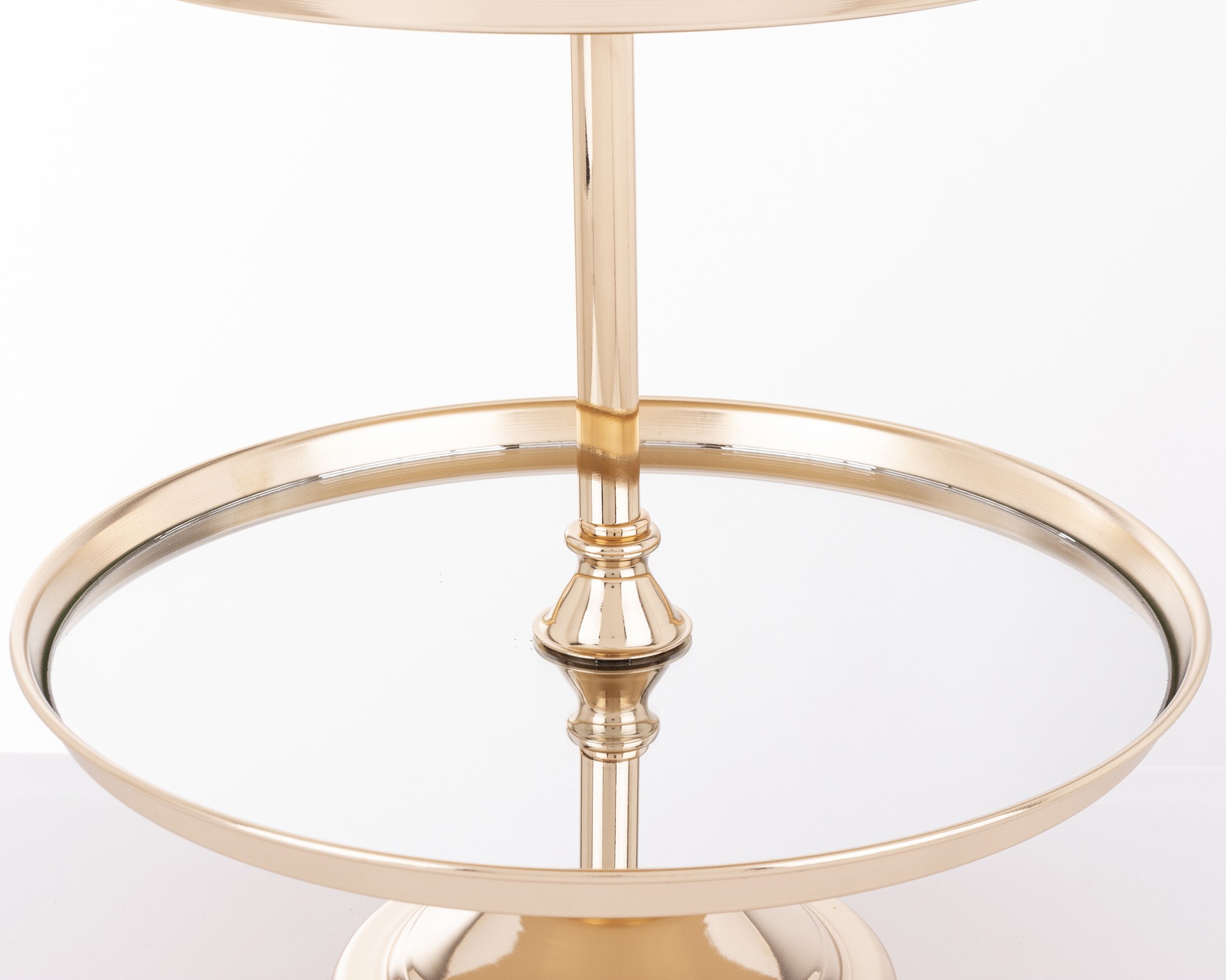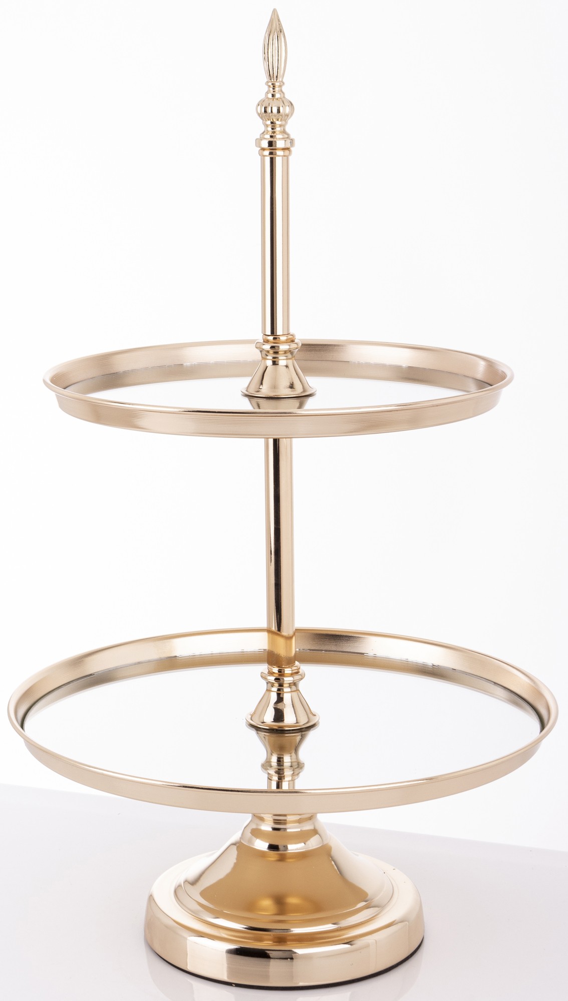 Patera dwupoziomowa Sobre to wyraz luksusu i elegancji, który wniesie niepowtarzalny urok do Twojej kuchni i stołu podczas różnego rodzaju przyjęć i uroczystości. Ta wyjątkowa patera o długości 52 cm została starannie wykonana z metalu i szkła, tworząc połączenie materiałów o najwyższej jakości. Jej wyjątkowy złoty kolor i delikatna tekstura nadają charakteru całej kompozycji, sprawiając, że staje się centralnym punktem podczas serwowania potraw.