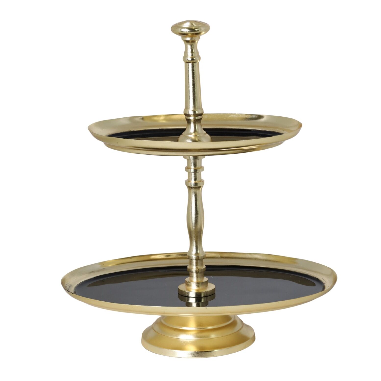 Ta metalowa patera dwupoziomowa z czarnym szkliwem to doskonały dodatek do nowoczesnych i stylowych wnętrz, dodając elegancji i funkcjonalności. Stanowi zarówno praktyczne miejsce do przechowywania, jak i atrakcyjny detal dekoracyjny w Twoim domu.