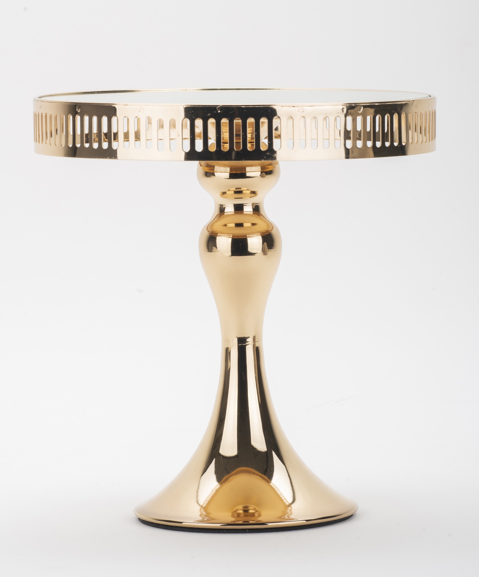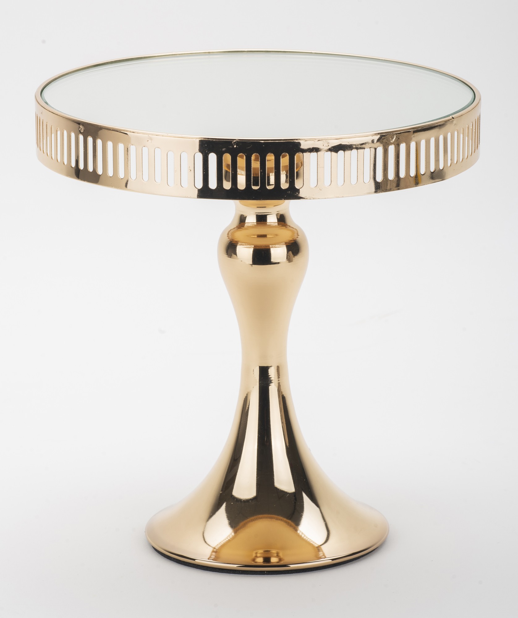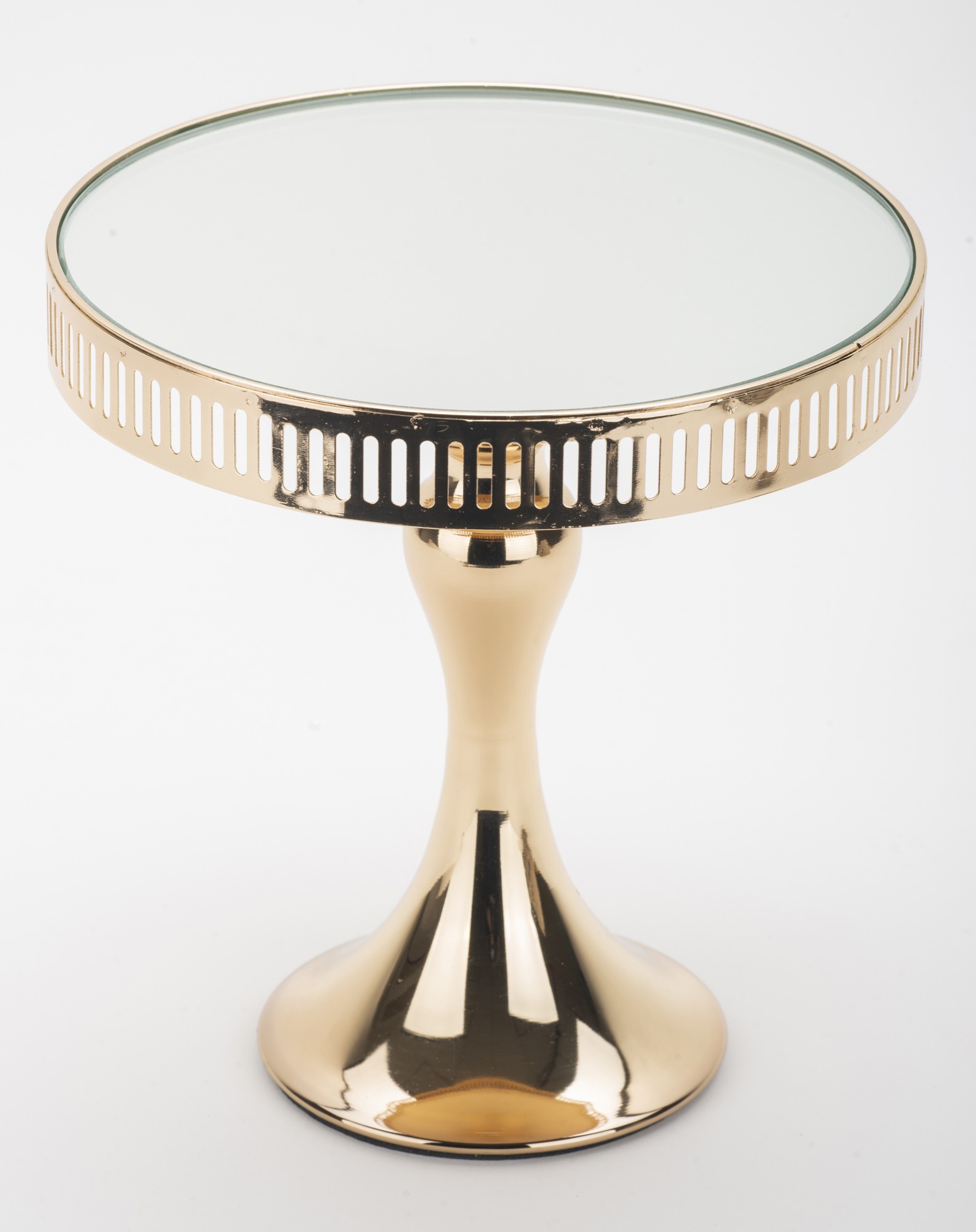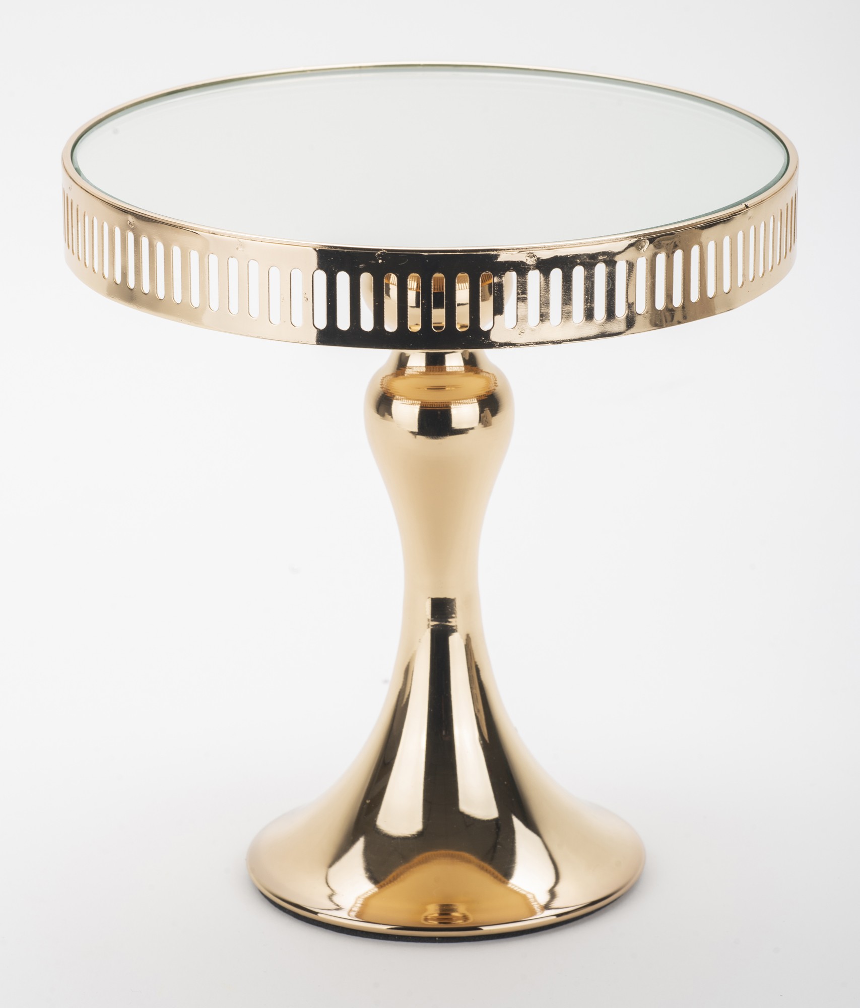 Patera lustrzana Alto II to wyraz luksusu i elegancji, która wniesie niepowtarzalny urok do Twojej kuchni. Ta wyjątkowa patera o średnicy 20 cm została starannie wykonana z metalu i szkła, tworząc połączenie materiałów o najwyższej jakości. Jej wyjątkowy złoty kolor i subtelna tekstura nadają charakteru całej kompozycji, sprawiając, że staje się ona centralnym punktem podczas przyjęć i uroczystości.