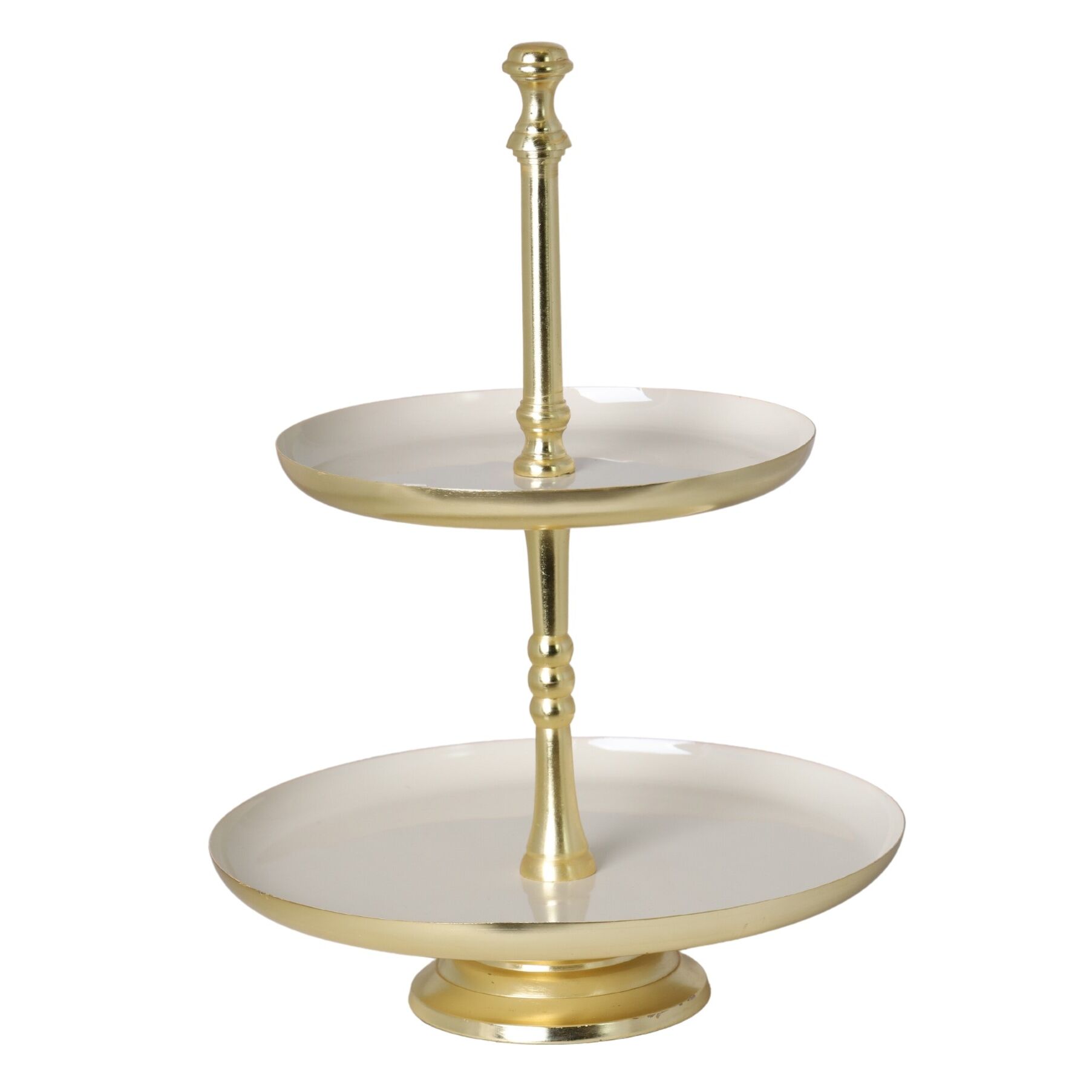 Ta dwupoziomowa okrągła patera metalowa z beżowym szkliwem doskonale sprawdzi się podczas spotkań rodzinnych, przyjęć czy uroczystości. Będzie wyjątkowym elementem dekoracyjnym na stole, dodając elegancji i wyrafinowania podawanym potrawom.