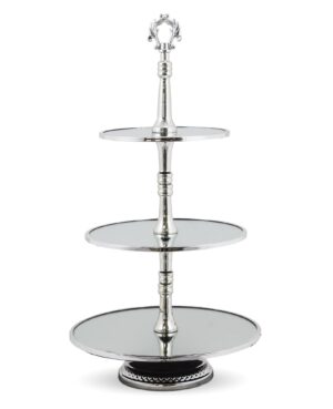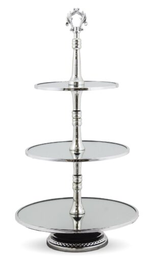 Patera metalowa trzypoziomowa z białym szkliwem to wyjątkowy produkt, który połączy funkcjonalność i styl w Twojej przestrzeni. Wykonana z solidnego metalu, ta patera zapewnia stabilność i trwałość, co sprawia, że jest idealna do codziennego użytku oraz specjalnych okazji.