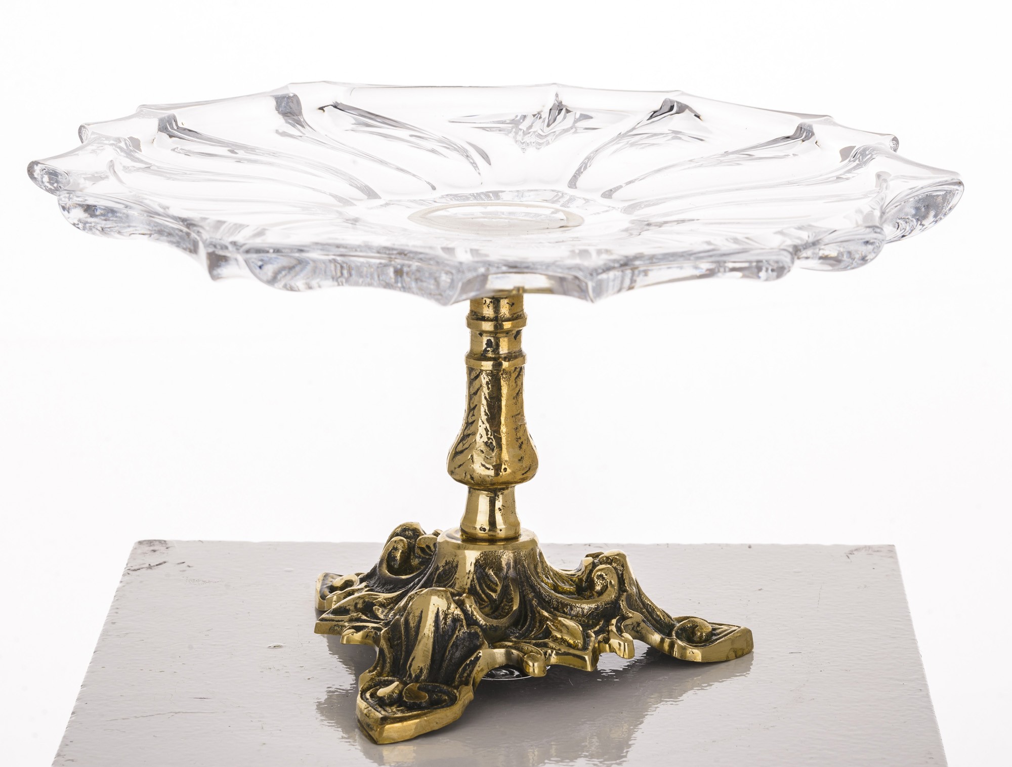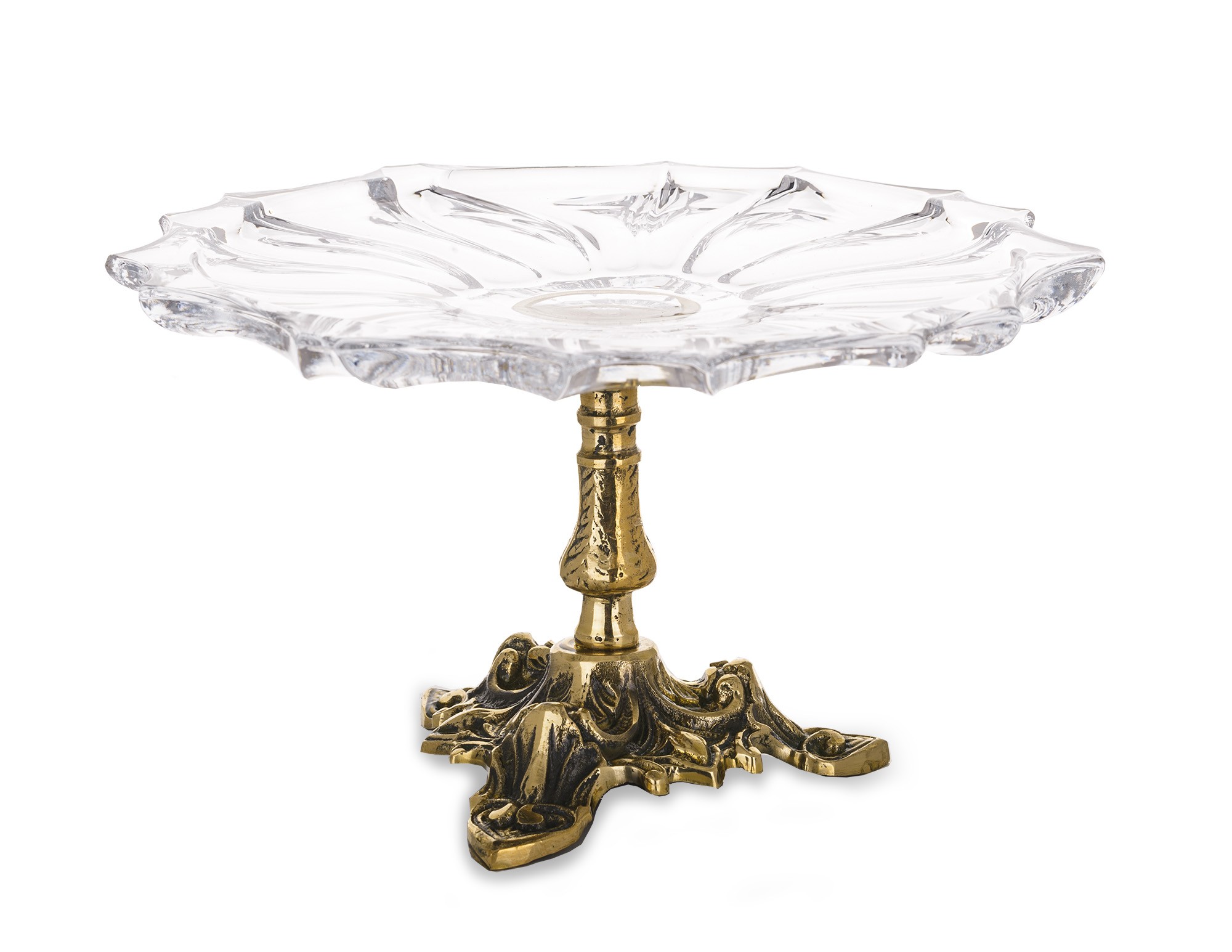 Ta wyjątkowa patera to prawdziwa perełka w świecie elegancji i stylu. Wykonana z solidnego mosiądzu w połączeniu ze szkłem, prezentuje się niezwykle okazale i dostojnie. Jej złoty kolor nadaje jej luksusowy charakter, który wspaniale komponuje się z różnymi stylami dekoracji.