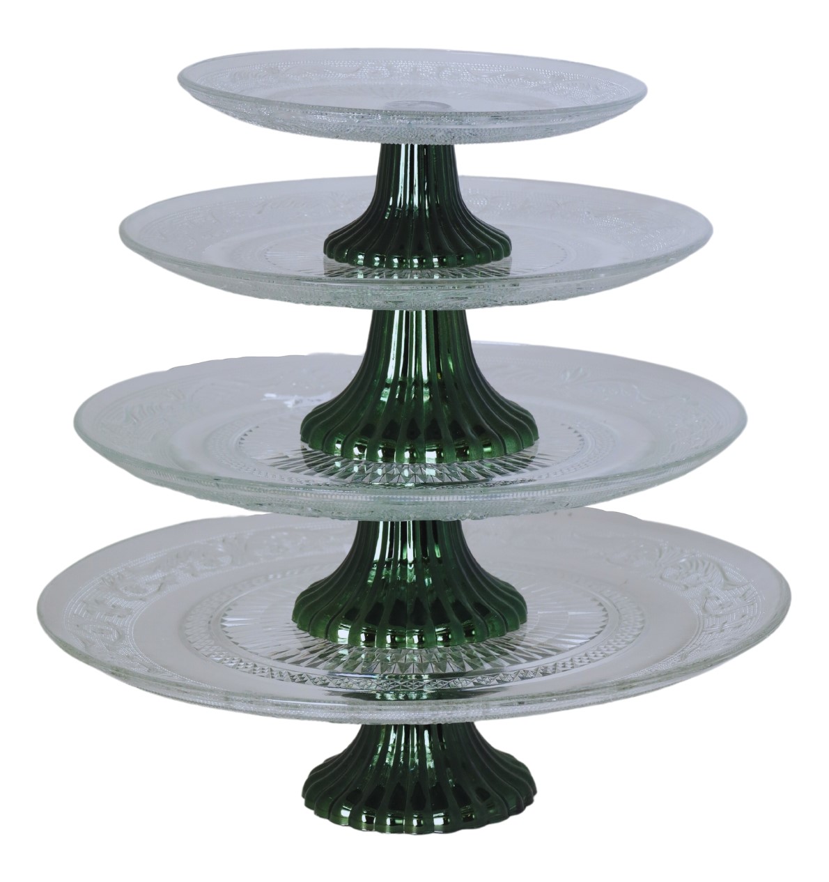 Elegancki design sprawia, że patera doskonale komponuje się zarówno z nowoczesnymi, jak i klasycznymi aranżacjami stołu, nadając im wyjątkowego uroku. Transparentne szkło w połączeniu z zieloną nogą nadaje jej nowoczesny i stylowy wygląd, który wprowadza do wnętrza elegancję i wyrafinowanie.