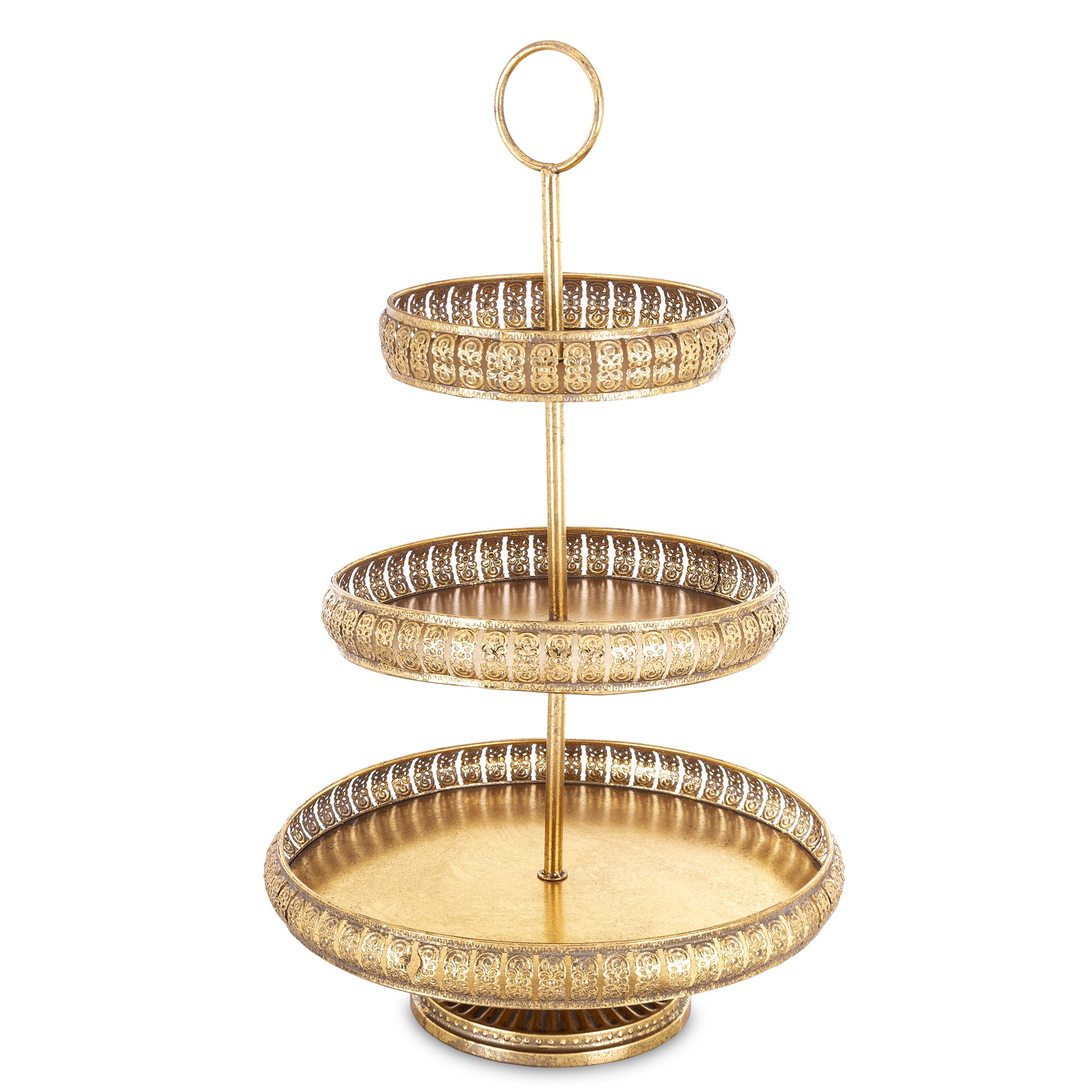 Patera trzypoziomowa złota Pastel to wyjątkowy element dekoracyjny w kuchni. Złoty kolor metalu nadaje jej elegancji, a trzypoziomowa konstrukcja sprawia, że doskonale sprawdza się podczas serwowania ciast, ciasteczek czy tortów. Jej subtelna tekstura dodaje charakteru, a solidne podstawienie gwarantuje bezpieczeństwo dla najcenniejszych smakołyków.