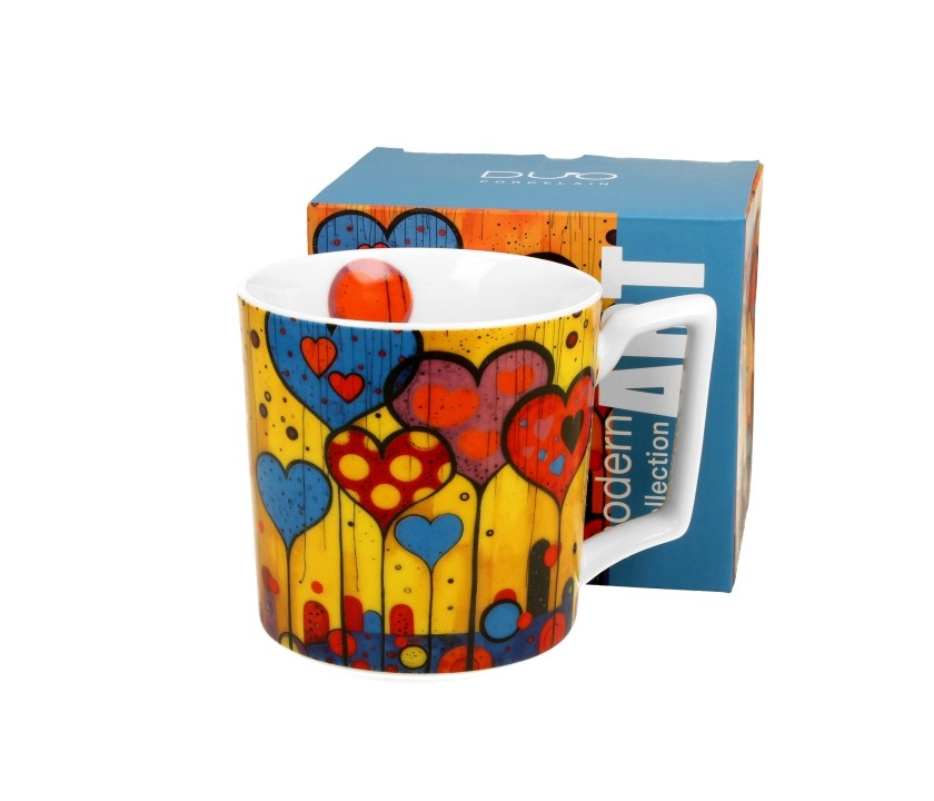 Kubek z kolekcji Modern HEARTS z kolorowymi sercami. Artystyczny, pełen energii i pozytywnych emocji.