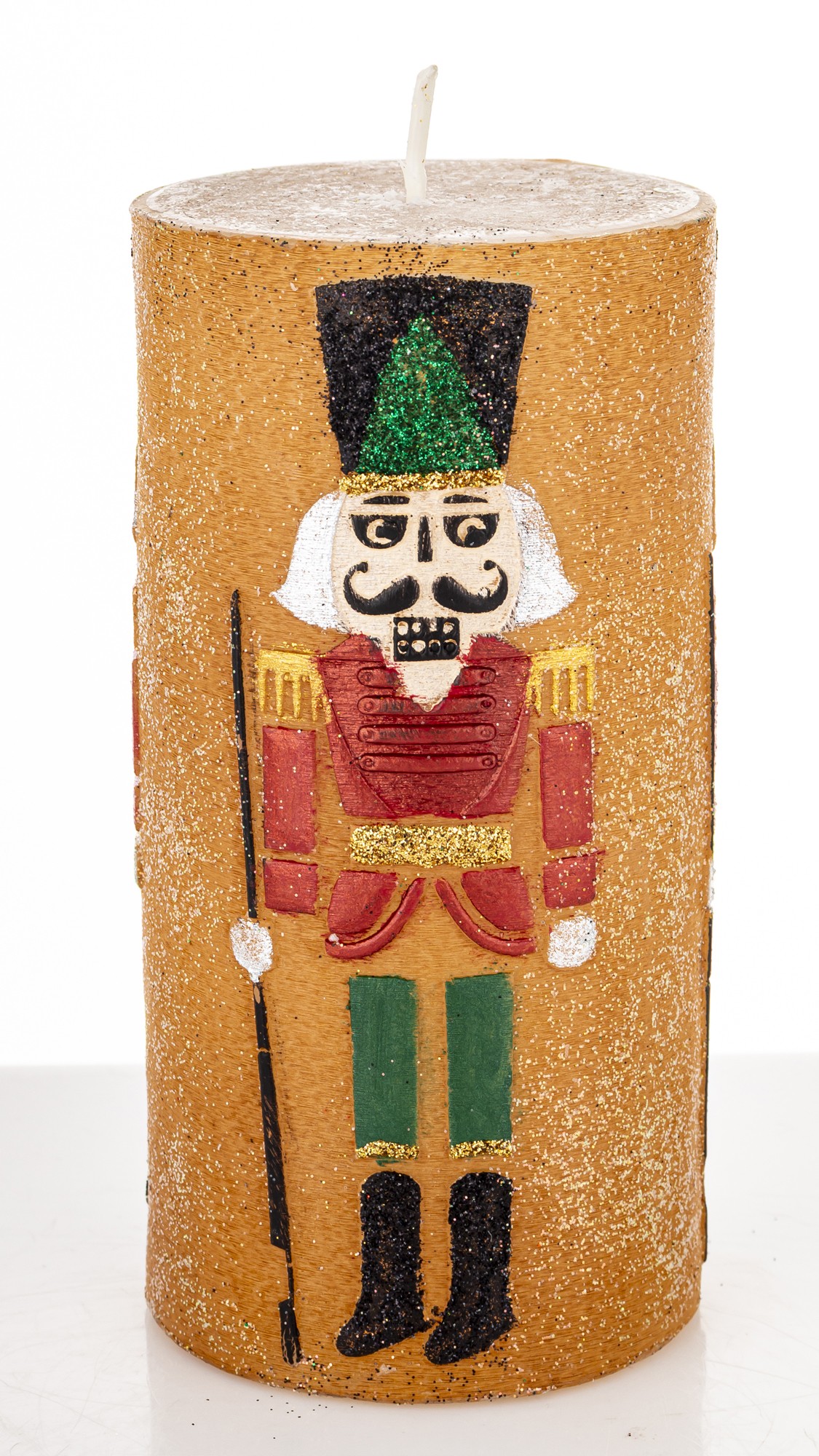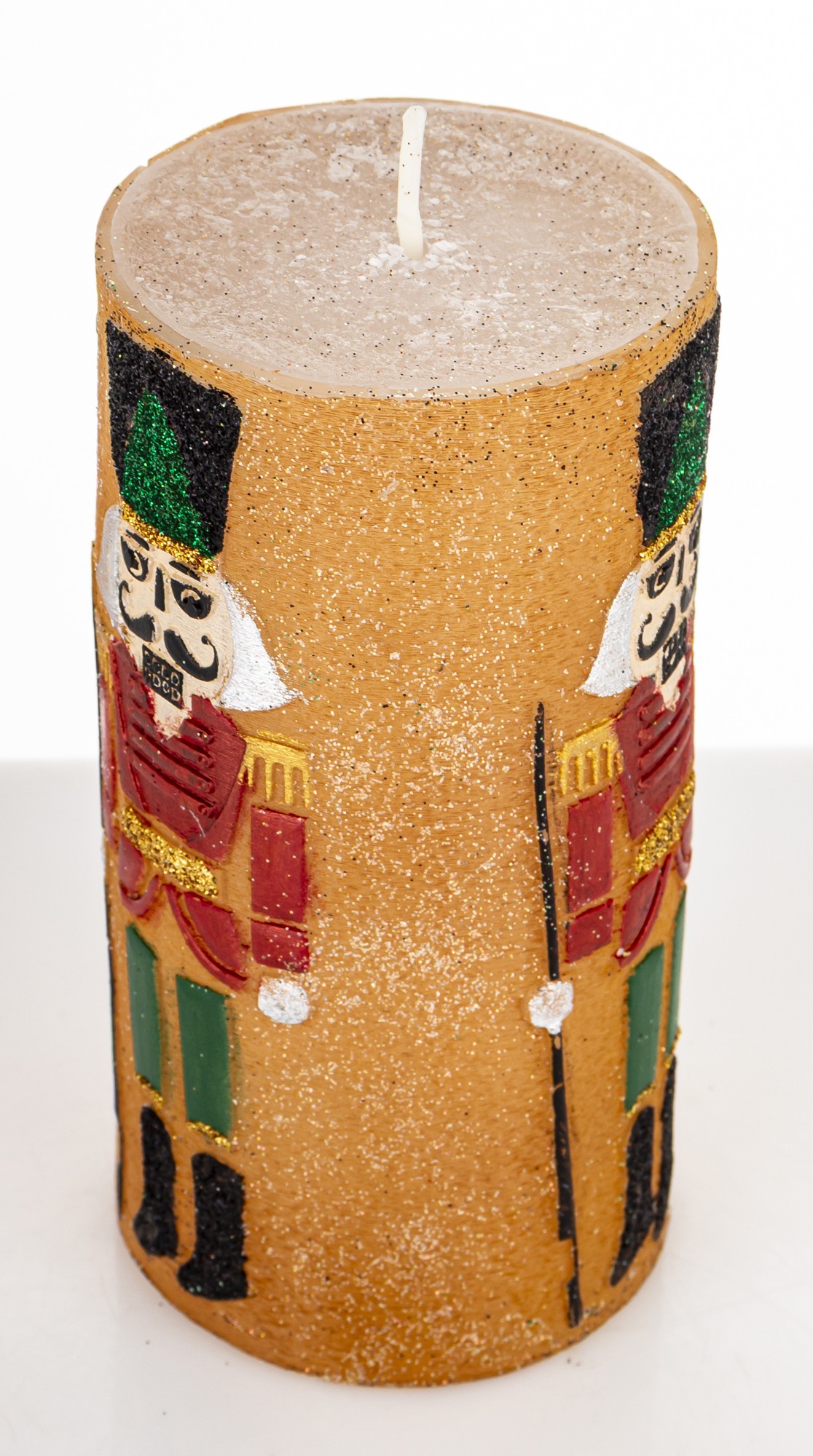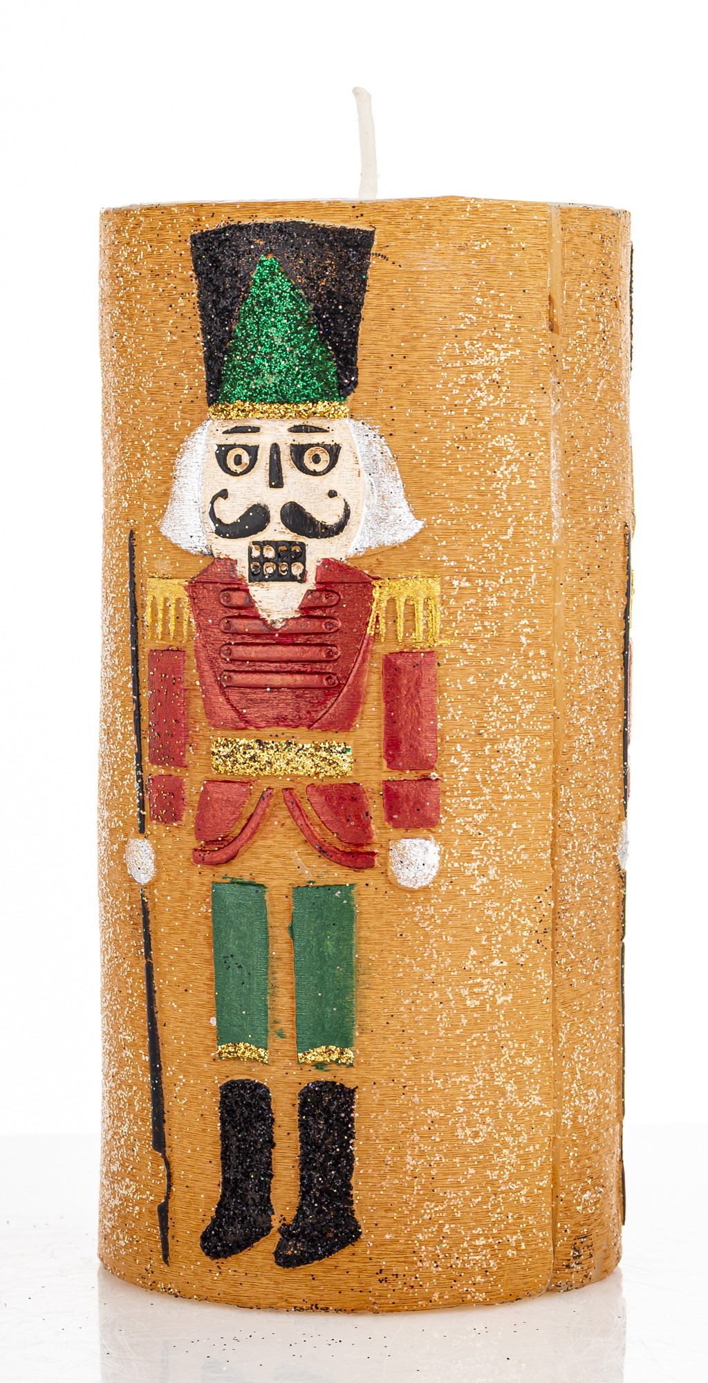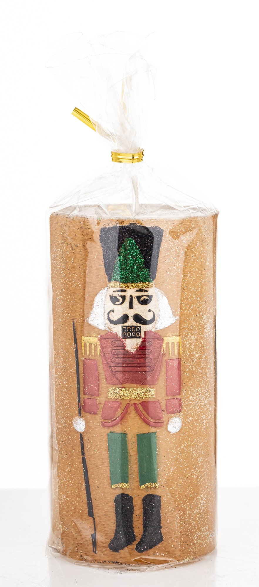 Dekoracyjna świeca z trójwymiarowym motywem dziadka do orzechów w klasycznym brązowym wykończeniu. Idealna do świątecznych aranżacji – elegancka, bajkowa i pełna charakteru.