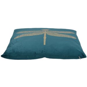 Złota ważka zdobiąca poduszkę to element, który nadaje jej niepowtarzalnego charakteru. Złoto symbolizuje bogactwo i luksus, a motyw ważki dodaje poduszce delikatności i finezji. To połączenie tworzy efektowną i stylową dekorację.