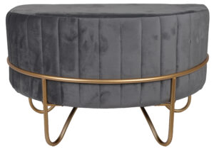 Puf półokrągły welurowy na złotym stelażu FEKO w eleganckim ciemno niebieskim kolorze to doskonałe uzupełnienie każdego wnętrza. Jego wymiary wynoszą 70x40x44 cm, co sprawia, że jest idealny zarówno do małych jak i większych pomieszczeń. Wykonany z wysokiej jakości weluru, puf łączy w sobie wygodę z nowoczesnym stylem, a złoty stelaż dodaje mu ekskluzywnego charakteru. Ten produkt znakomicie sprawdzi się jako dodatkowe miejsce do siedzenia lub jako podnóżek, a także jako stylowy element dekoracyjny w Twoim domu. Postaw na elegancję i funkcjonalność – wybierz puf FEKO i wnieś do swojego wnętrza odrobinę luksusu.