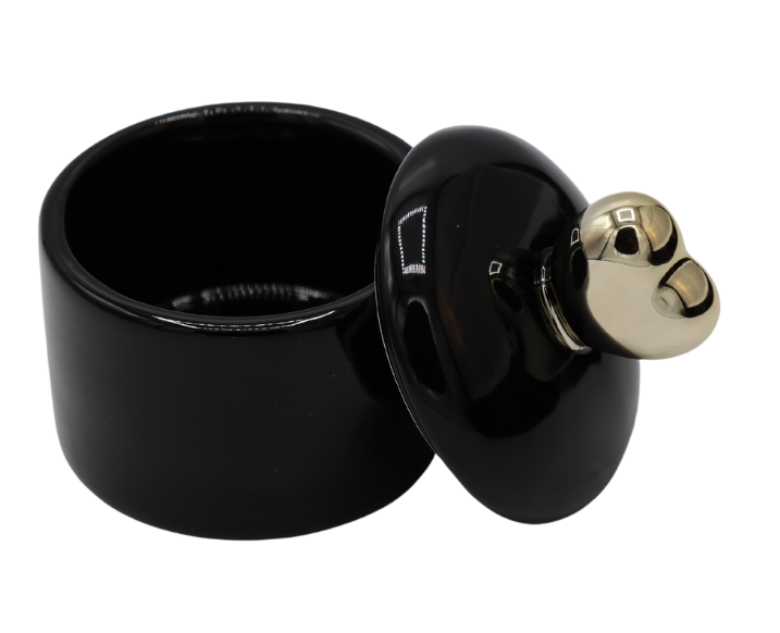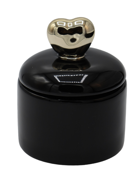 Puzderko ceramiczne czarne ze złotym sercem ERTE