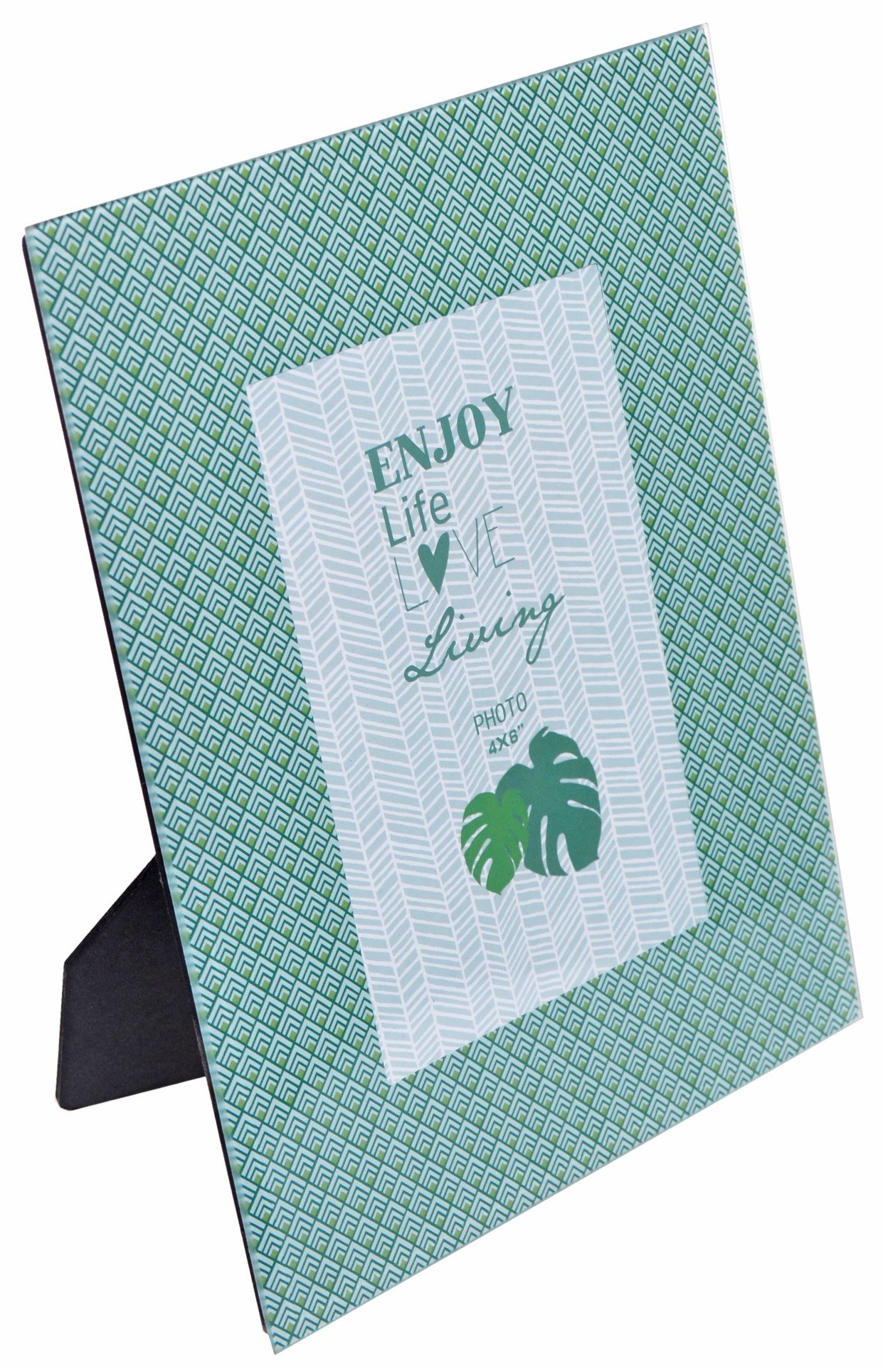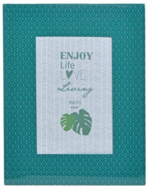 Wprowadź do swojego wnętrza odrobinę świeżości i motywacji dzięki Ramce szklanej na zdjęcie VERE – wyjątkowej dekoracji, która łączy nowoczesny styl z tropikalnym klimatem. Wykonana z wysokiej jakości szkła, ramka prezentuje subtelny wzór w odcieniach zieleni i bieli, z centralnym napisem „Enjoy life, love living”, który codziennie przypomina o radości z małych rzeczy.