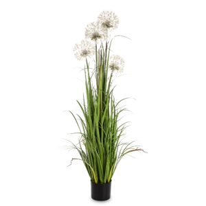 Roślina Dekoracyjna Led GOLDEN PLUME to stylowa dekoracja, która łączy naturalny charakter traw z delikatnością kremowych pióropuszy pampasowych. Smukłe, zielone źdźbła przeplatają się z miękkimi, jasnymi akcentami, tworząc harmonijną, lekką kompozycję. Całość osadzona jest w eleganckiej, czarnej doniczce, która podkreśla nowoczesny i minimalistyczny charakter dekoracji.