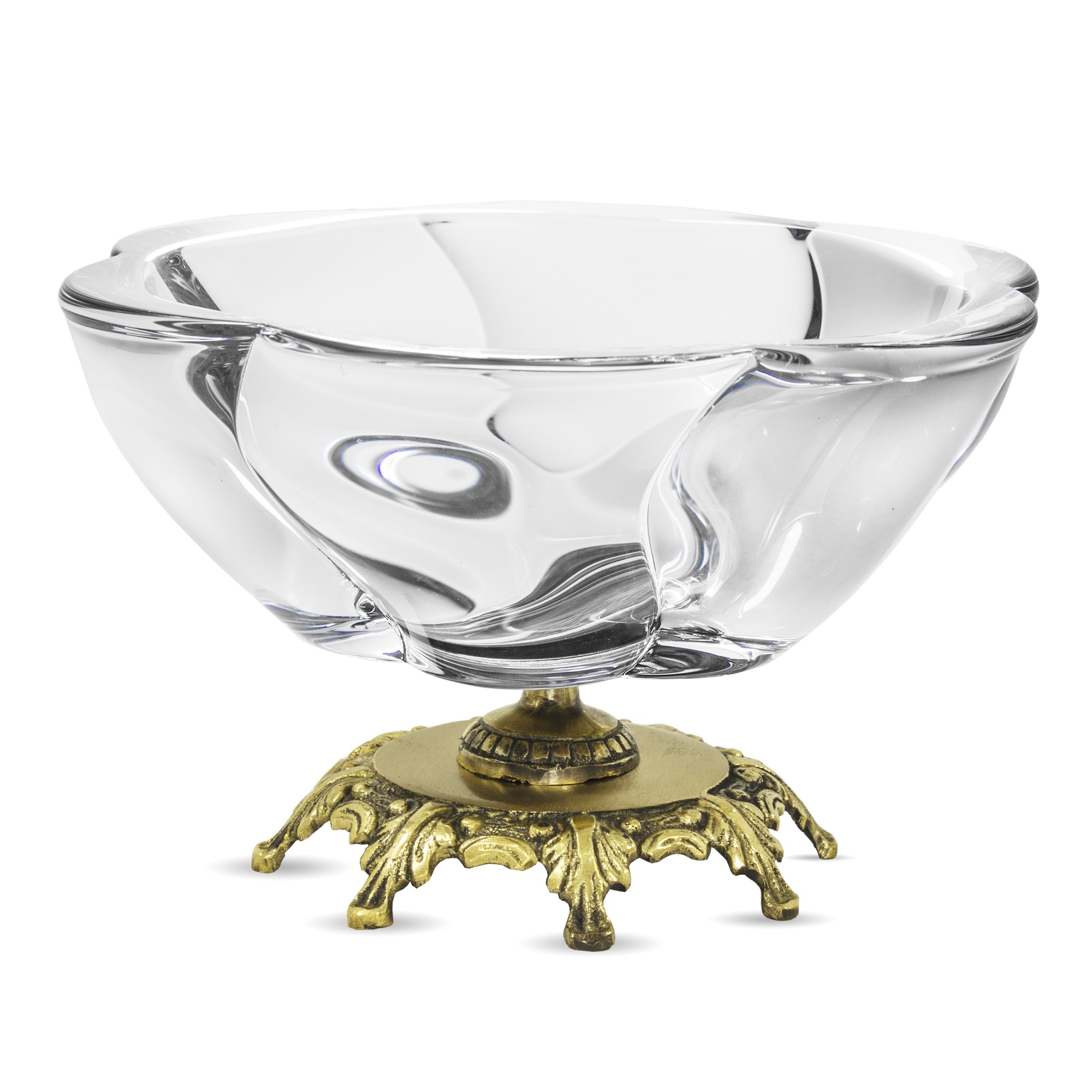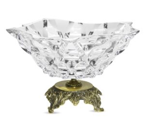 Salaterka z mosiądzu i kryształu Bohemia o imponującej średnicy 34 cm to arcydzieło designerskiego rzemiosła, które wyróżnia się nie tylko elegancją, ale również imponującym rozmiarem. Wykonana z najwyższej jakości materiałów, ta salaterka stanowi kwintesencję stylu i luksusu.