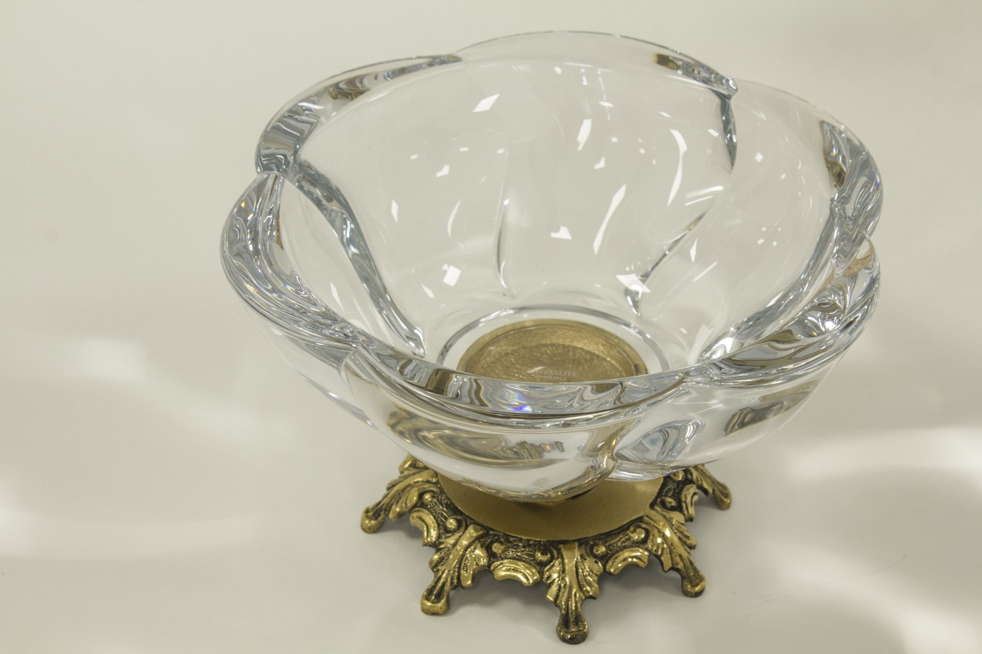 Salaterka z mosiądzu i kryształu Bohemia 20cm