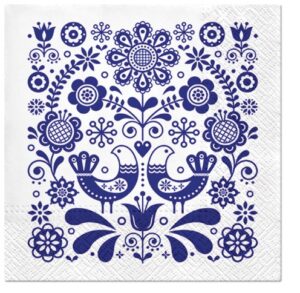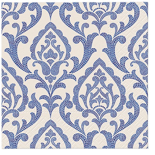 Eleganckie serwetki ARGA w portugalskim stylu – kremowe tło i ozdobny niebieski wzór inspirowany klasycznymi azulejos. Idealne na stylowe przyjęcia i codzienną dekorację stołu.