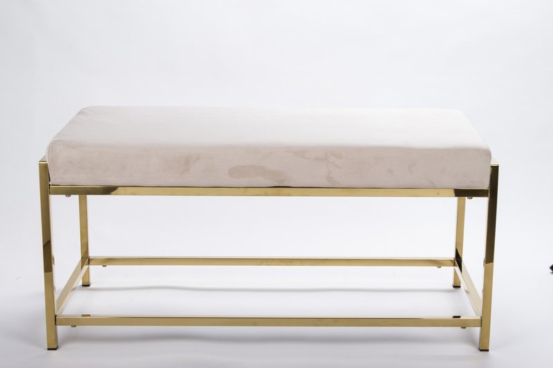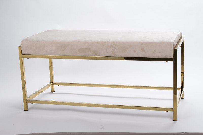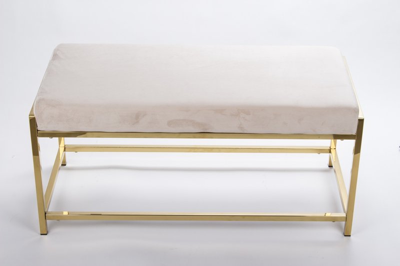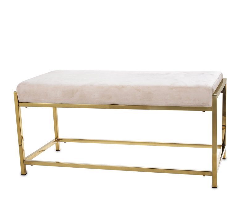 Siedzisko Anastasia to elegancka pufa wykonana z miękkiego weluru w kolorze beżowym. Ozdobiona jest metalowymi, złotymi nogami, które dodają jej nowoczesnego stylu.