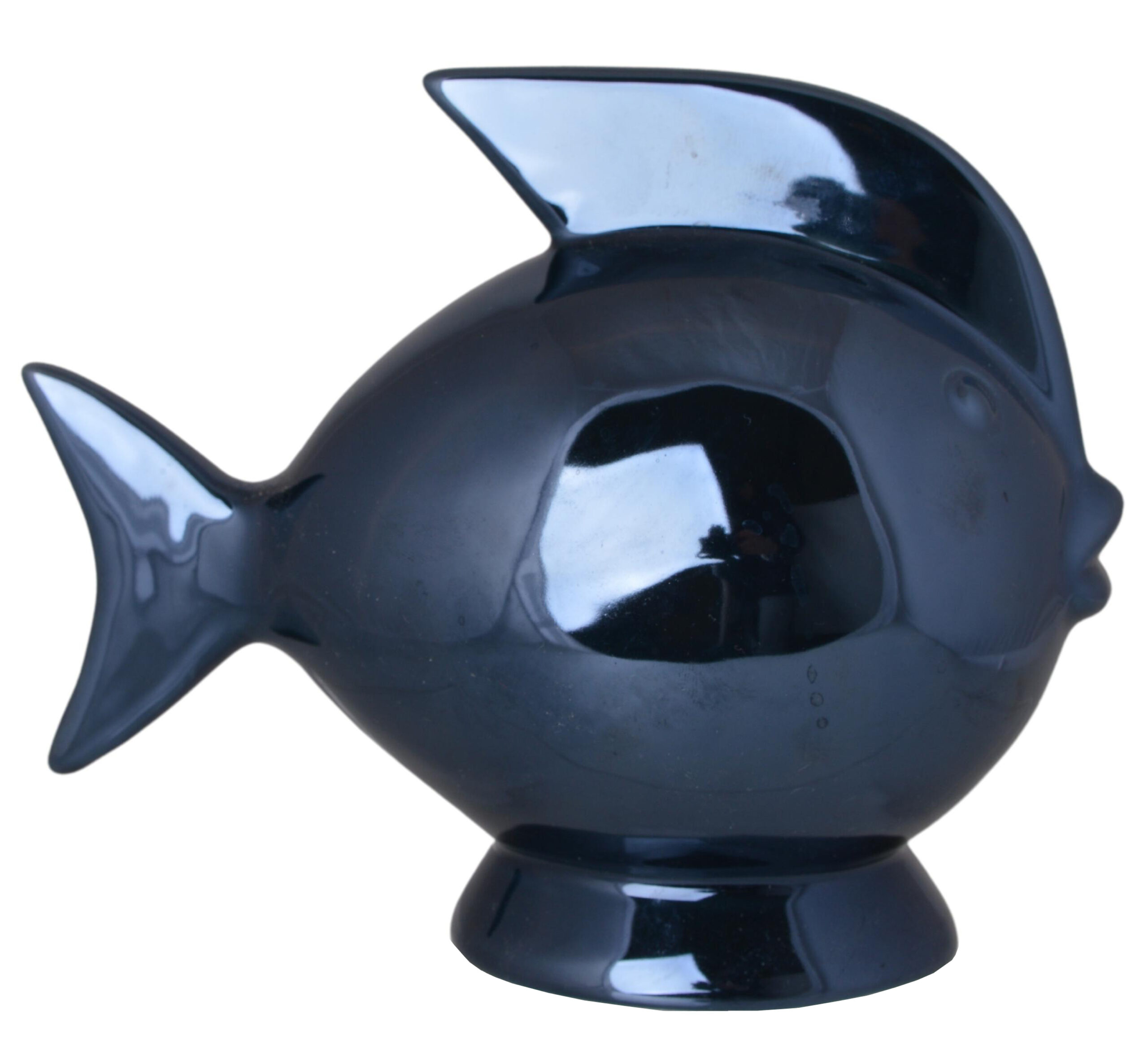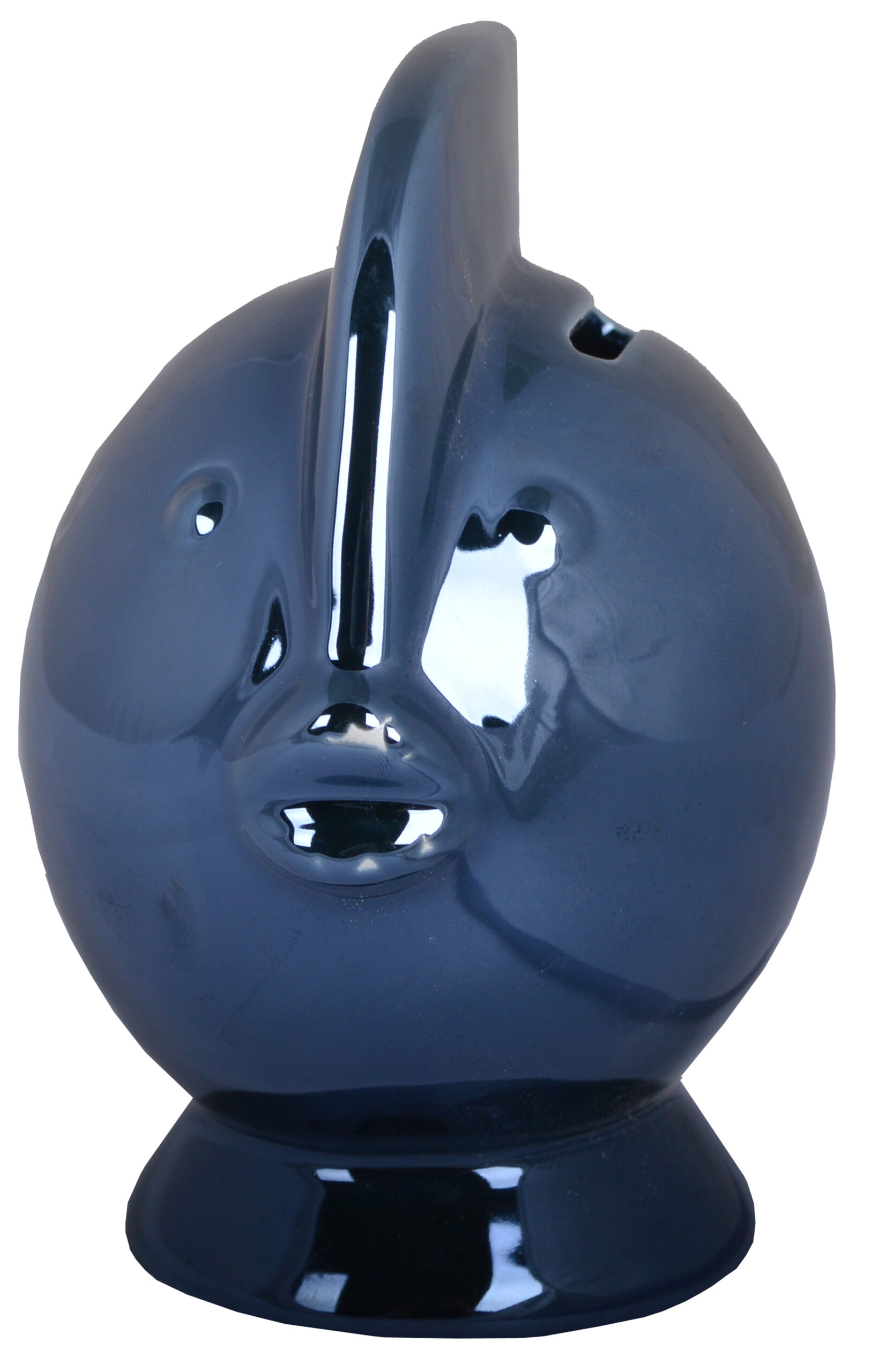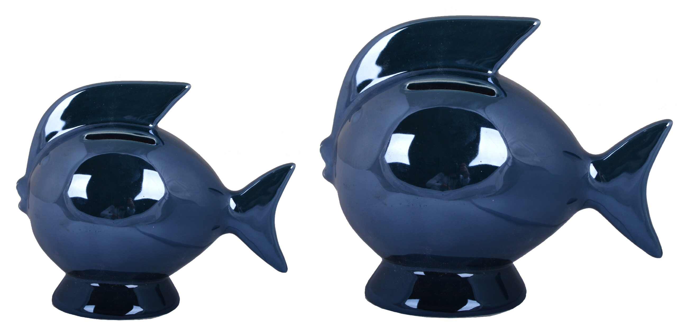 Ta wyjątkowa skarbonka zachwyca oryginalnym kształtem ryby oraz głębokim, granatowym kolorem, który nadaje jej elegancji i wyrazistości. Wykonana z wysokiej jakości ceramiki i pokryta połyskującą glazurą, pięknie odbija światło i stanowi efektowny akcent dekoracyjny w każdym wnętrzu. Jej kompaktowy rozmiar sprawia, że świetnie prezentuje się na półce, biurku czy komodzie.