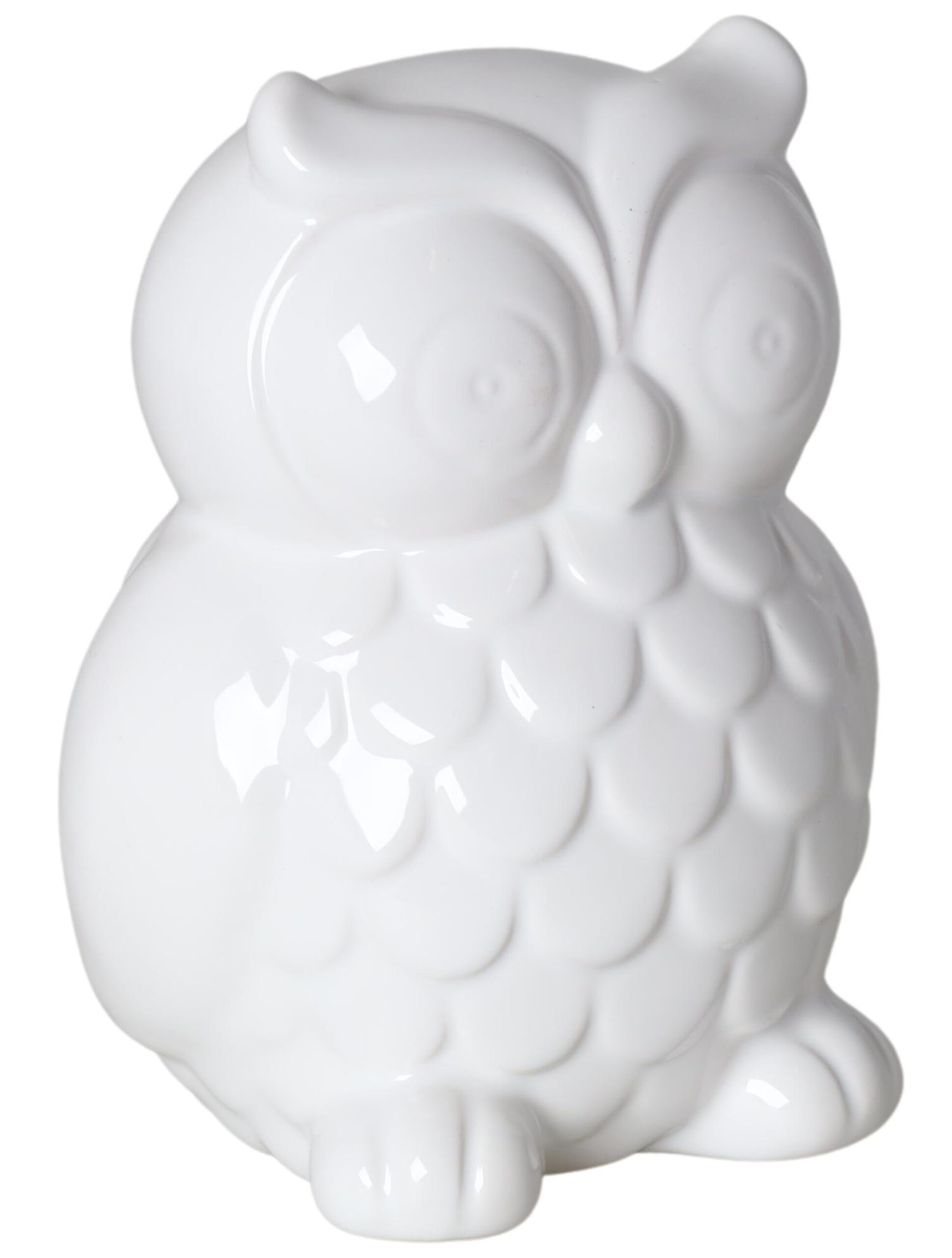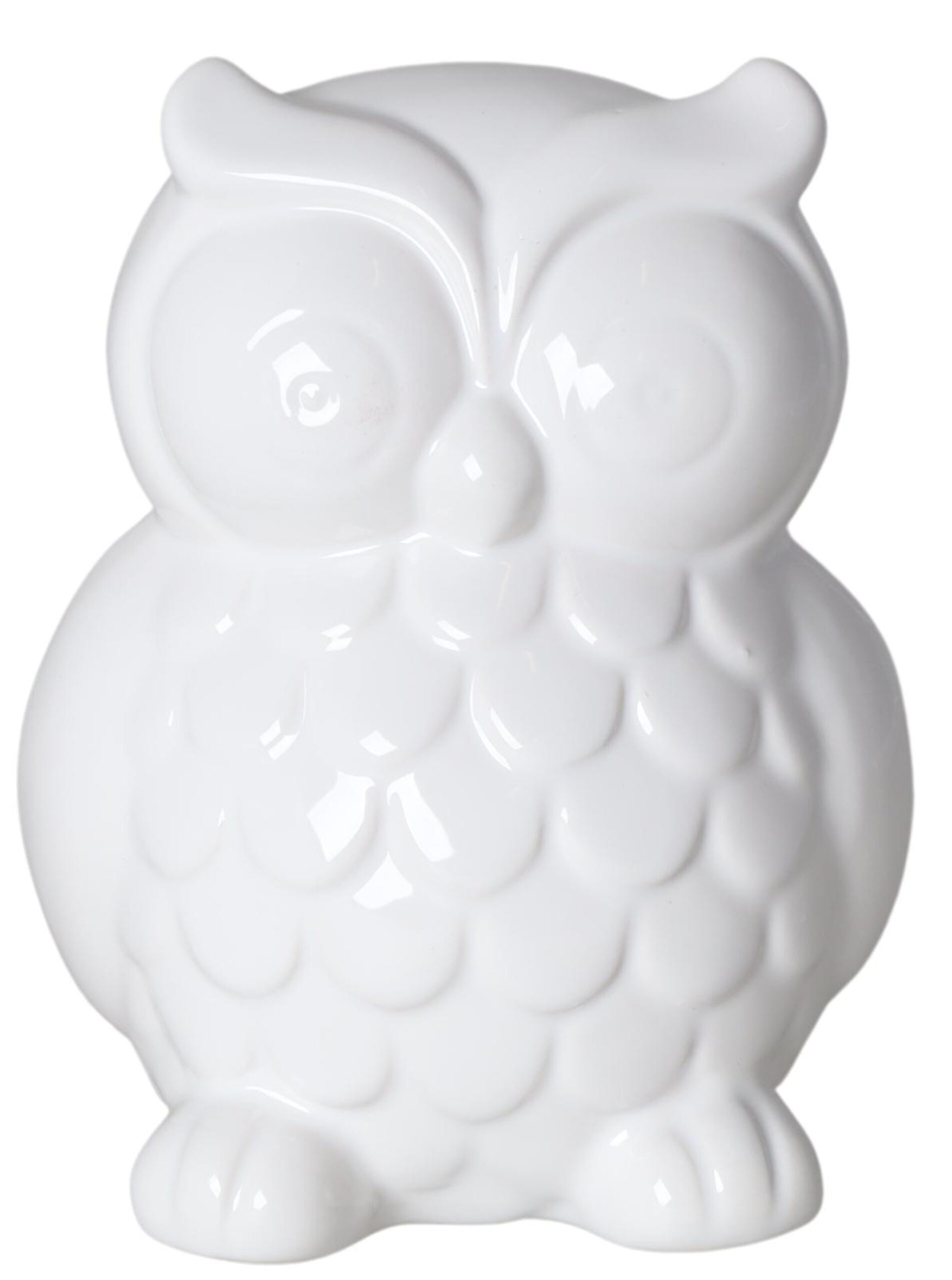 Urocza, biała skarbonka w kształcie sowy. Stylowa dekoracja i praktyczny sposób na przechowywanie drobnych oszczędności.