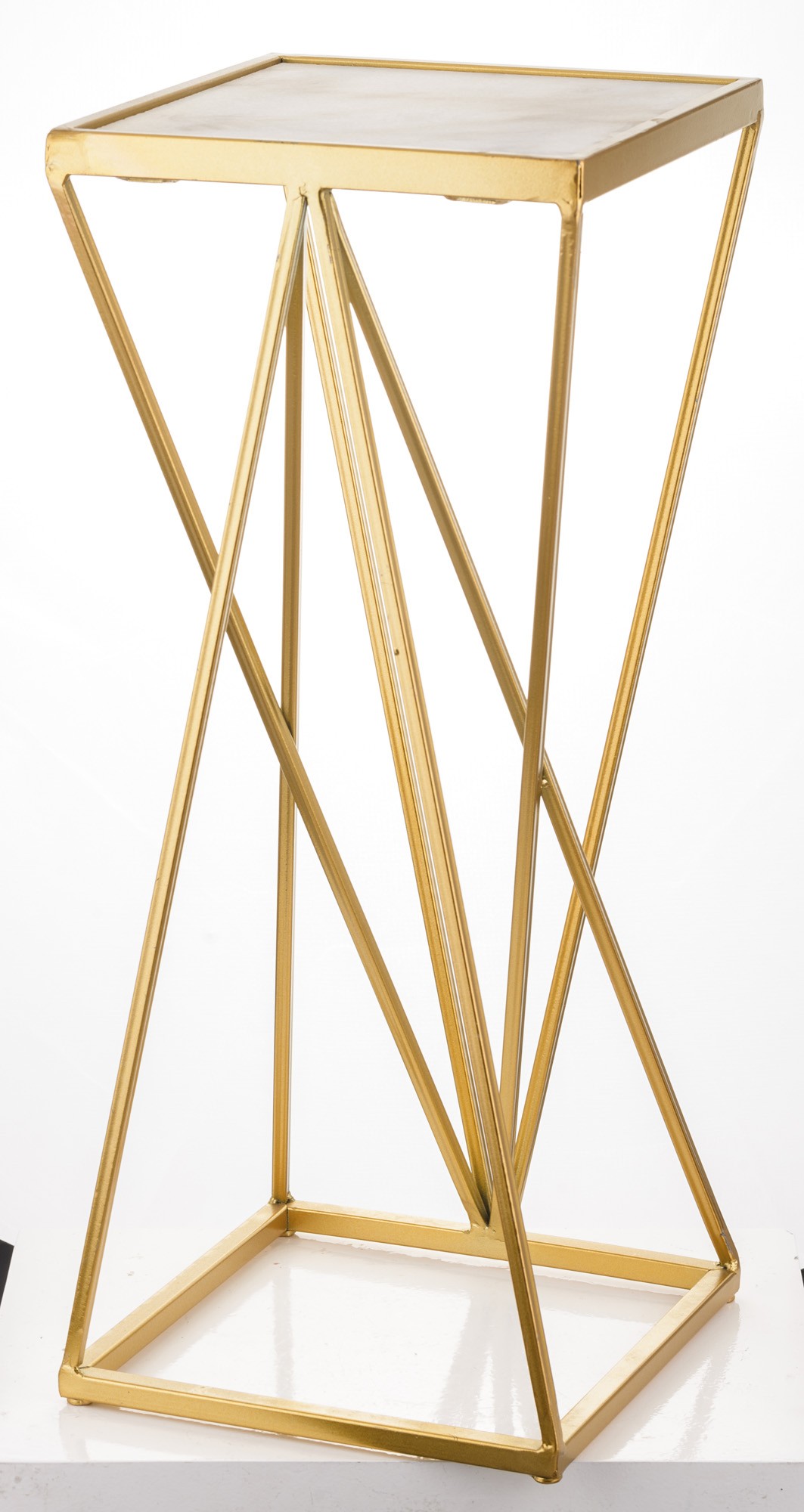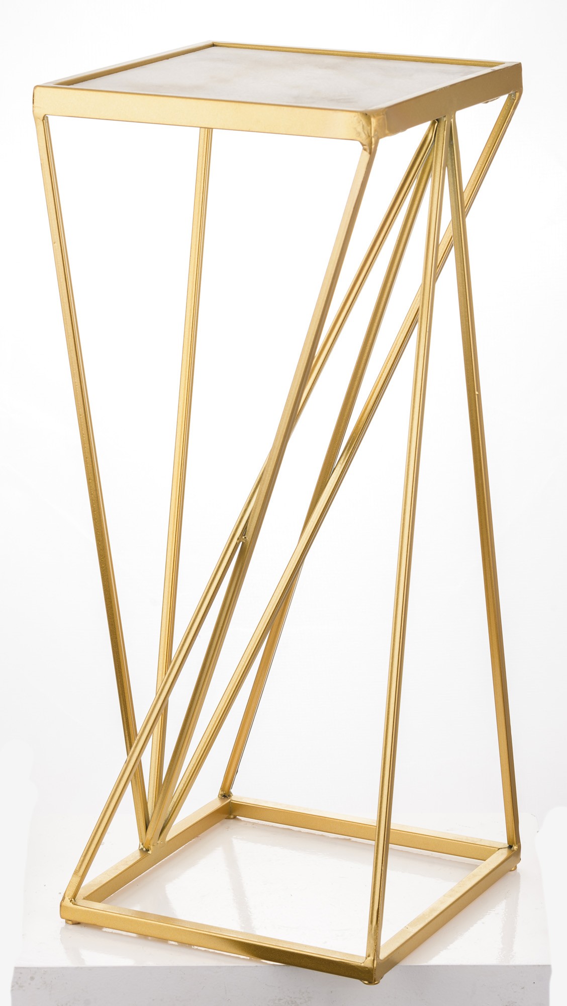 Stojak Na Kwiaty GRIFO to elegancka dekoracja o geometrycznej formie i złotym wykończeniu. Idealny do ekspozycji roślin, świec lub dekoracyjnych akcentów. Wnosi do wnętrza nutę luksusu i nowoczesnego stylu.
