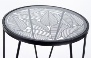 Stelaż stolika Eniks wykonany jest z metalu, co zapewnia mu stabilność i solidność. Czarny kolor stelaża nadaje meblowi charakteru i sprawia, że doskonale komponuje się z blatami o różnych kolorach i wzorach.