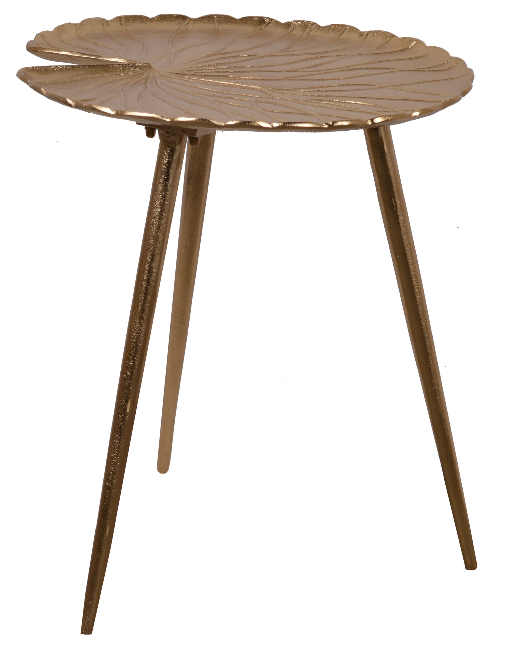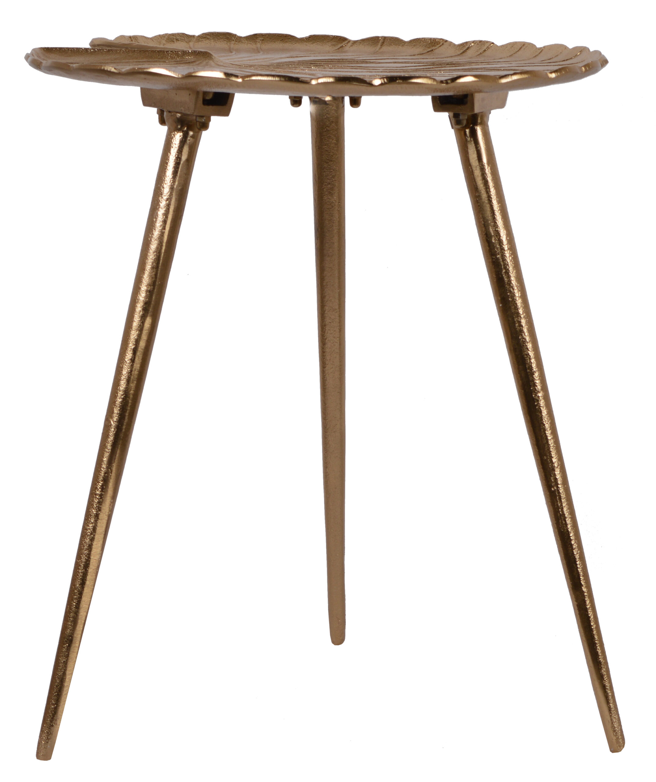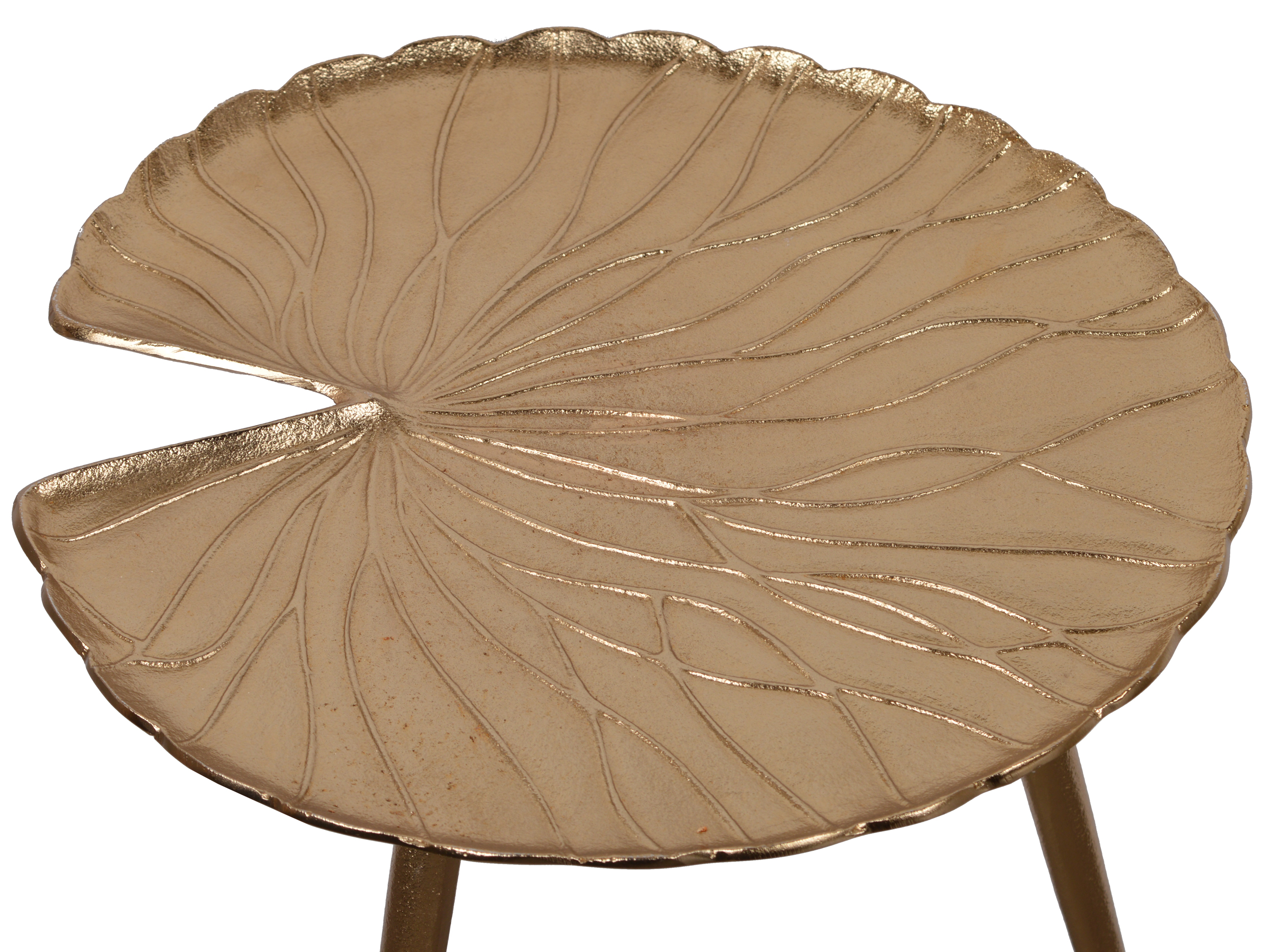 Stolik w kształcie liścia z wykonania metalowego i złotego wykończenia będzie idealnym uzupełnieniem salonu, sypialni czy nawet kawiarni. Może pełnić funkcję stolika kawowego, dekoracji czy miejsca na ulubioną lampkę nocną.