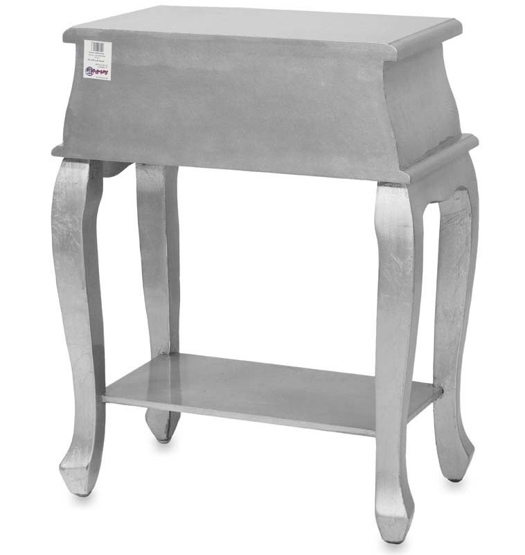 Stolik nocny Fiona to piękny i stylowy mebel wykonany z drewna w kolorze srebrnym, idealny do sypialni urządzonej w stylu glamour. Ma jedną szufladę z eleganckim, okrągłym uchwytem, która umożliwia przechowywanie niezbędnych przedmiotów w zasięgu ręki. Dodatkowo, na blacie znajduje się dodatkowa półka, na której można postawić lampkę nocną, budzik lub ulubioną książkę.