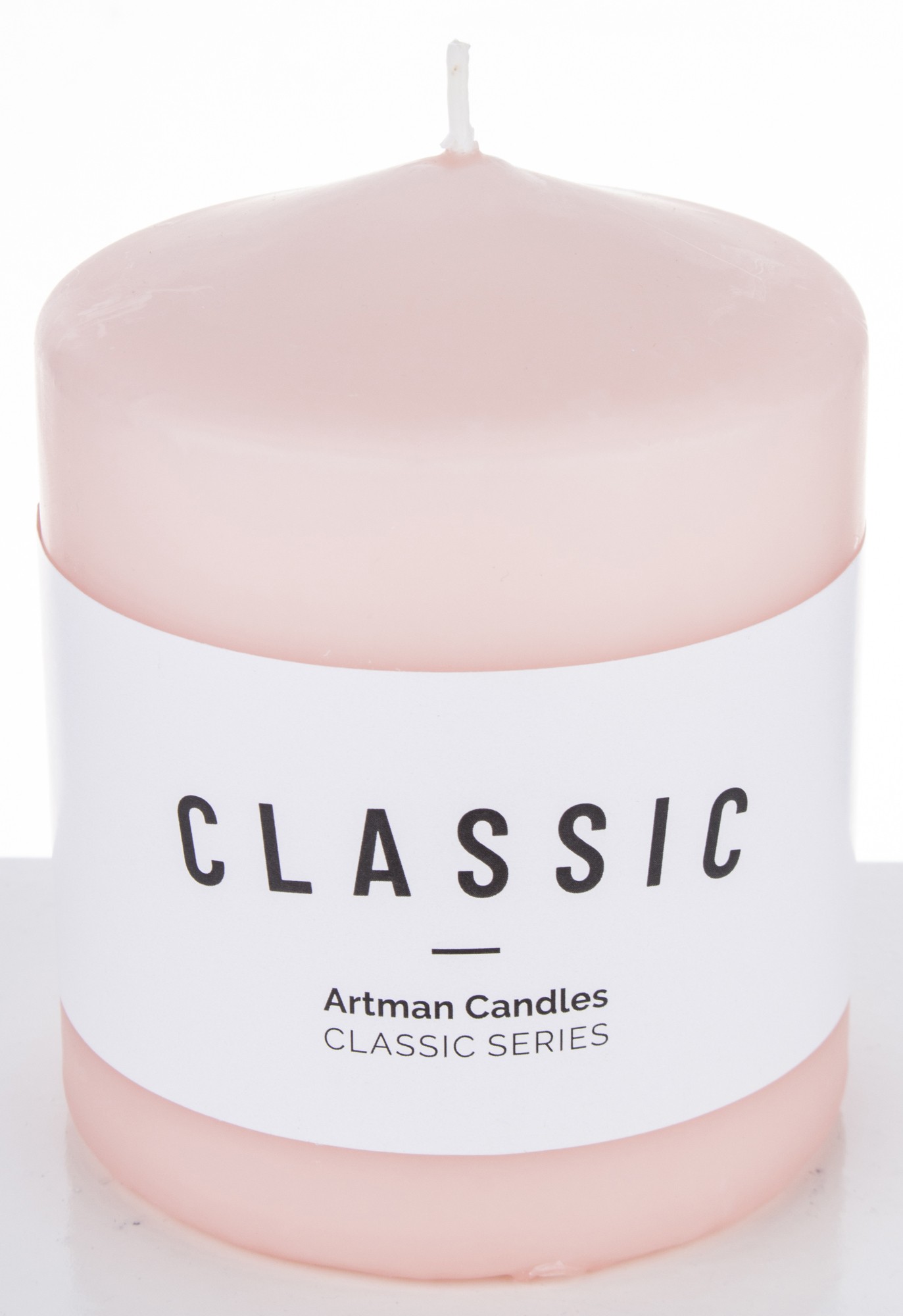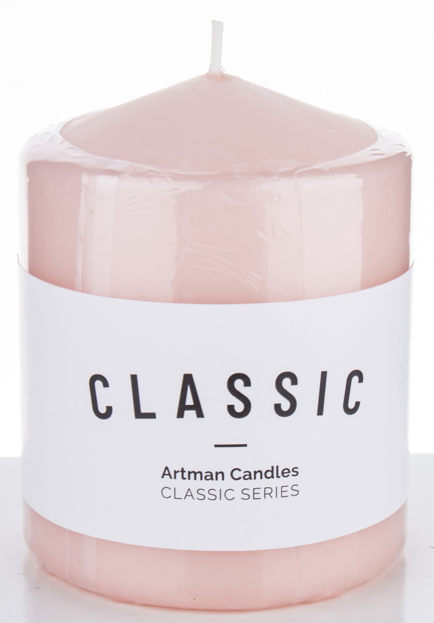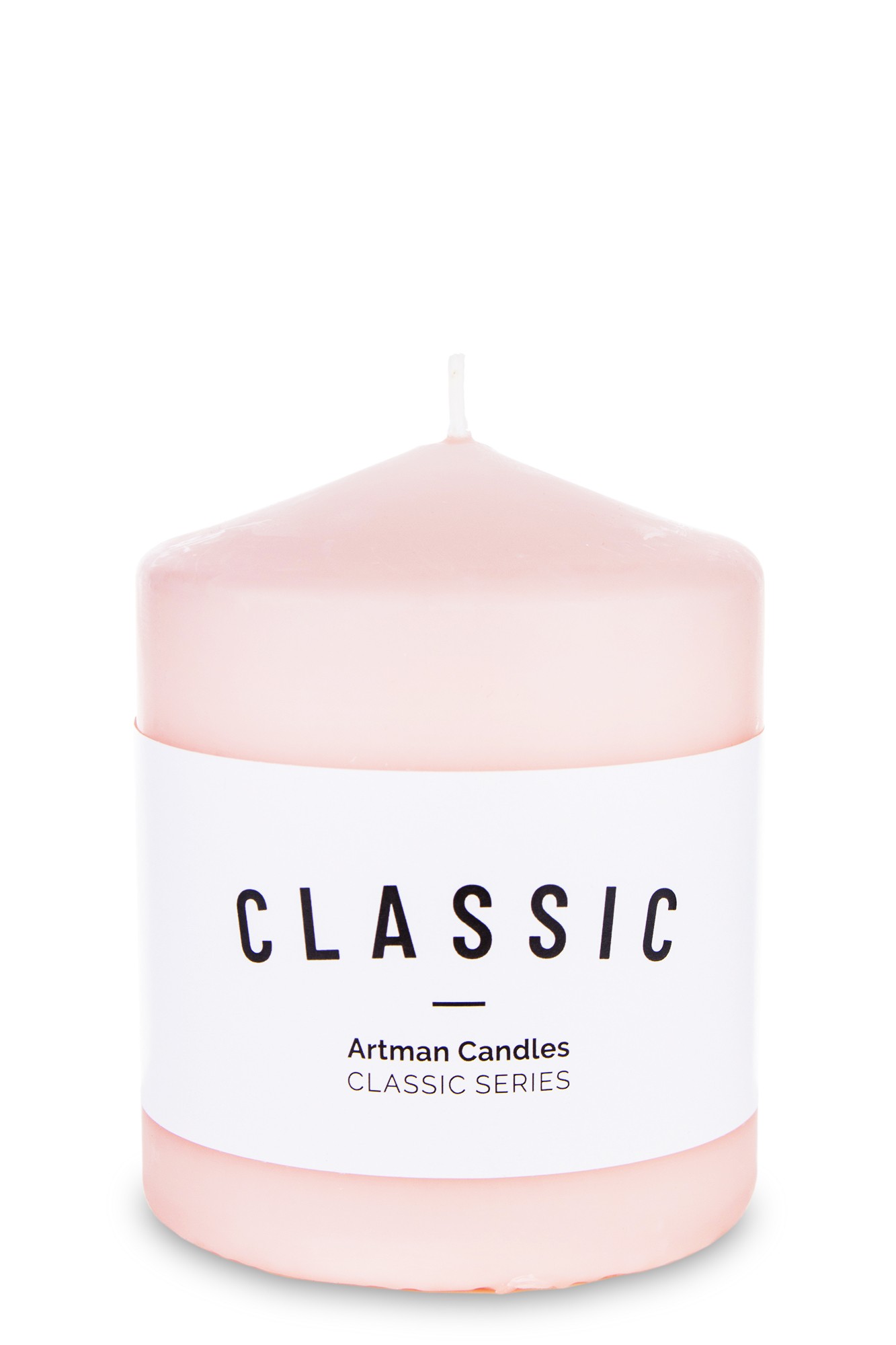 Jasnoróżowa świeczka classic w kształcie walca o wymiarach 10x8x8 to kwintesencja subtelności i elegancji. Jej pastelowy odcień wprowadza do przestrzeni delikatny akcent kolorystyczny, podkreślając przy tym atmosferę spokoju i relaksu.
