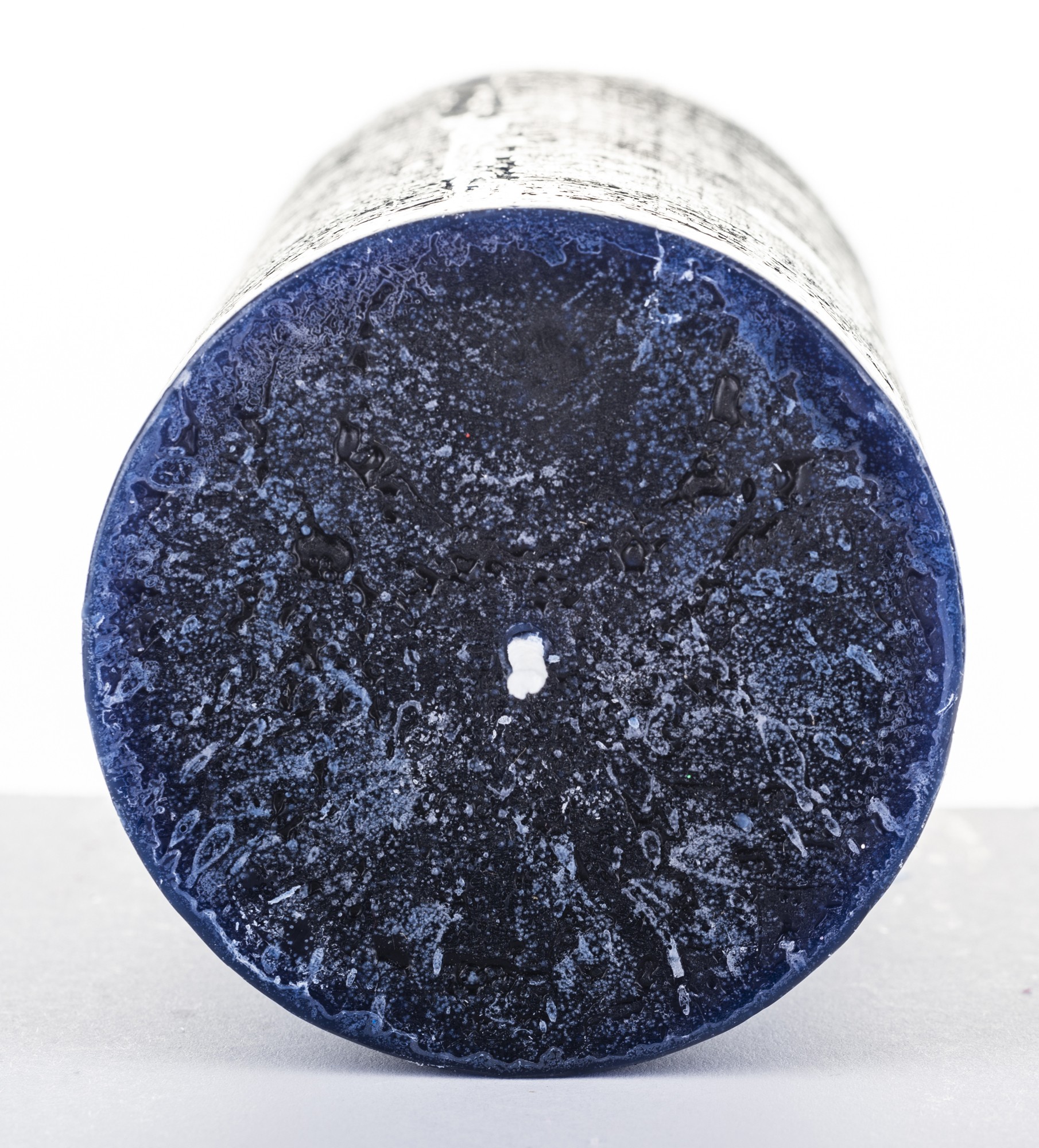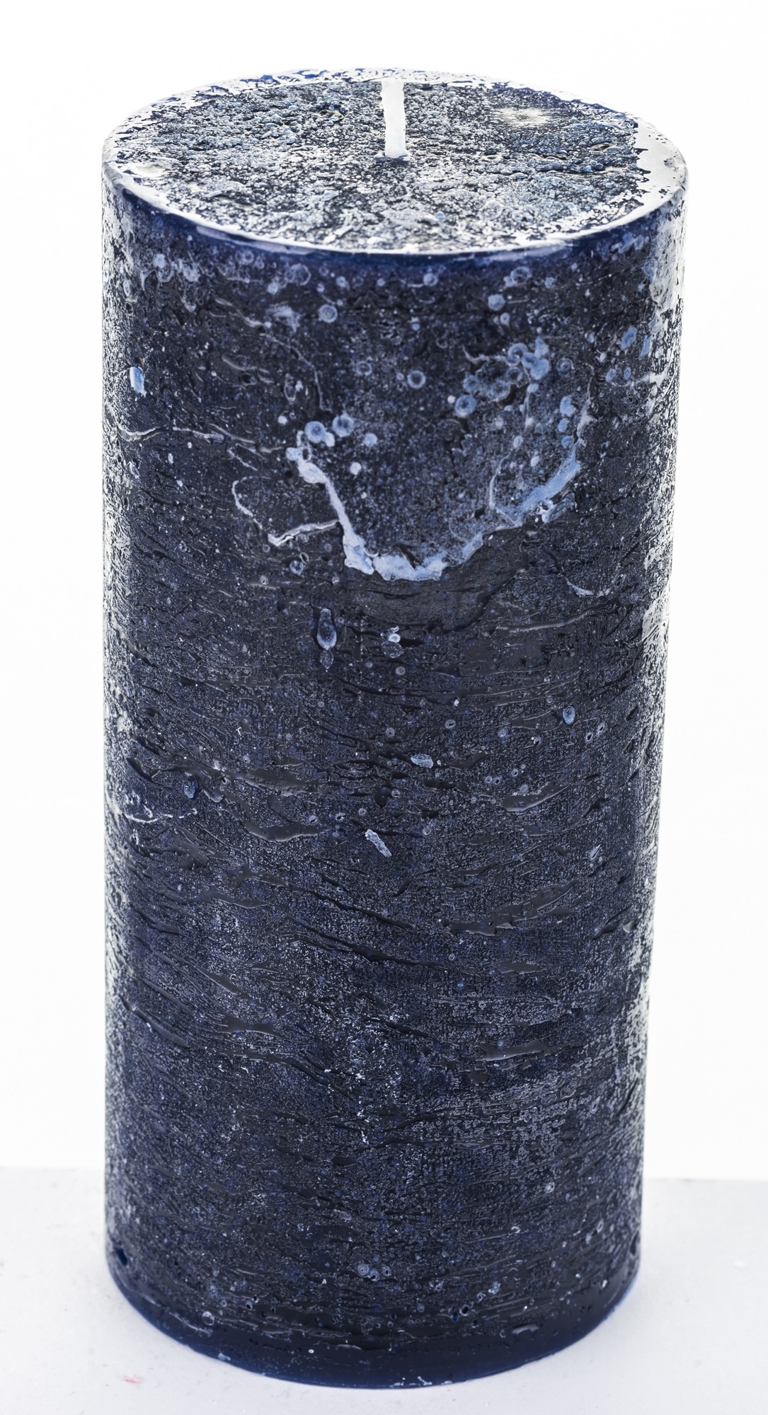 Świeca granatowa w kształcie walca o wymiarach 15x7x7cm to elegancki dodatek do Twojego wnętrza. Delikatne białe smugi nadają jej wyjątkowy wygląd, przypominając nocne niebo. Dzięki swojej barwie i klasycznej formie świeca idealnie sprawdzi się w każdym wnętrzu.
