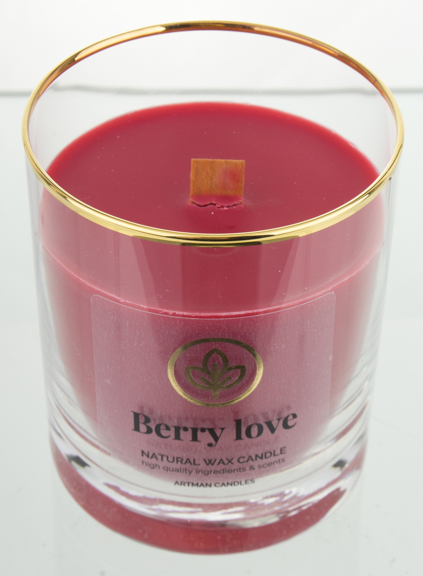 Zapach Berry Love, który roztacza ta świeca, przenosi Cię w świat miłości i intensywnych emocji. To zapach, który wypełnia pomieszczenie ciepłem i radością. To idealna świeca, aby stworzyć wyjątkową atmosferę, niezależnie od okazji.